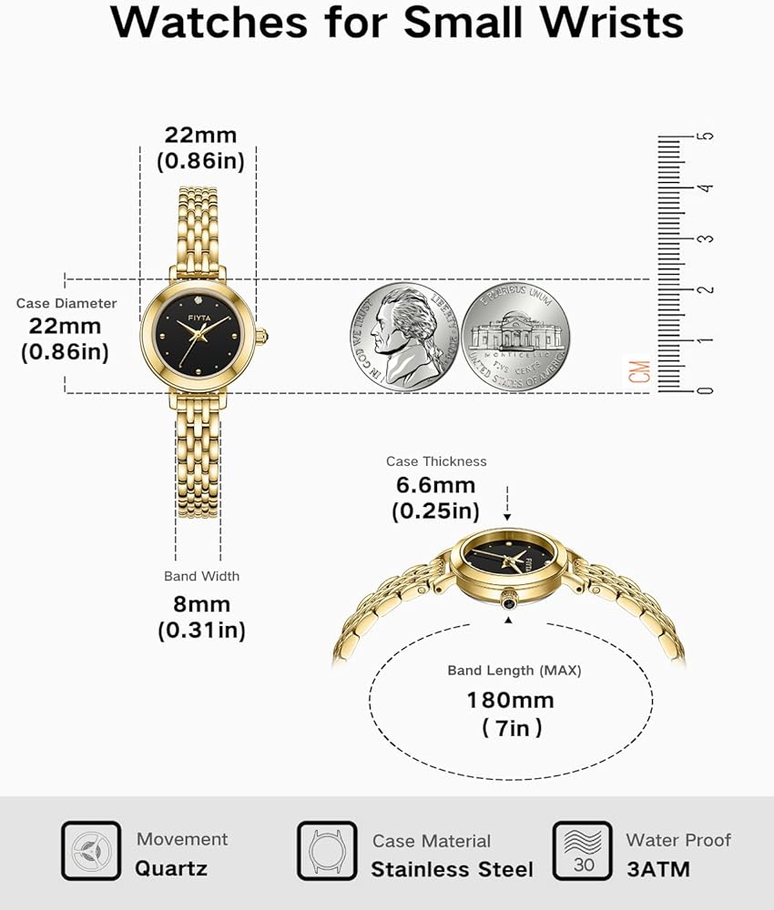 【 Precision Quartz Movement & Water Resistance 】: FIYTA women's small gold watch Powered by a reliable Japanese quartz movement, ensuring accurate timekeeping for years to come. Designed with 30 meters (3 ATM) water resistance, suitable for everyday wear and protection against splashes or light rain.
