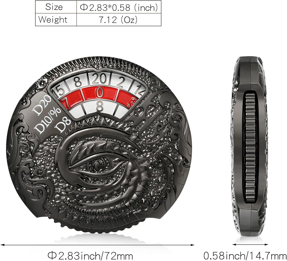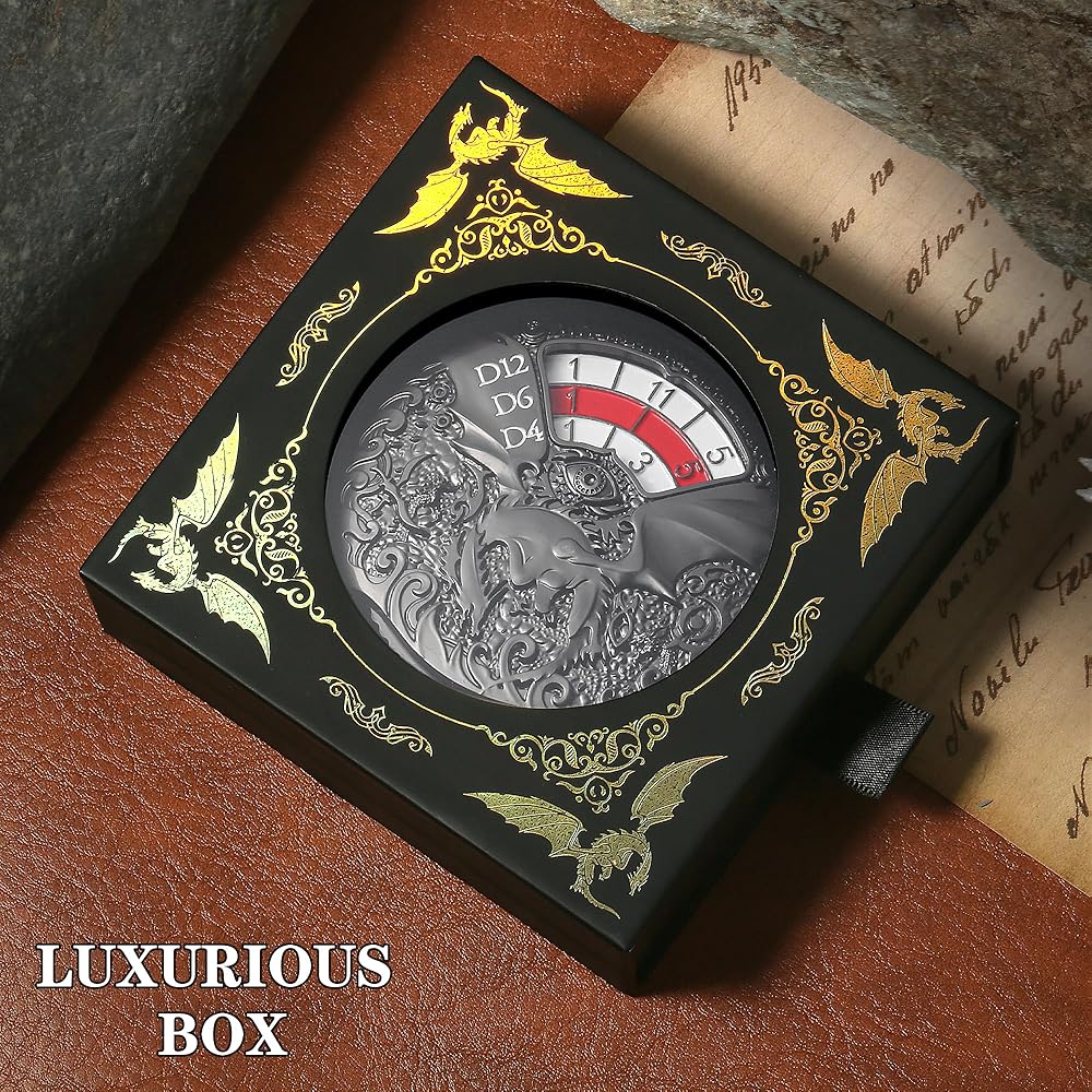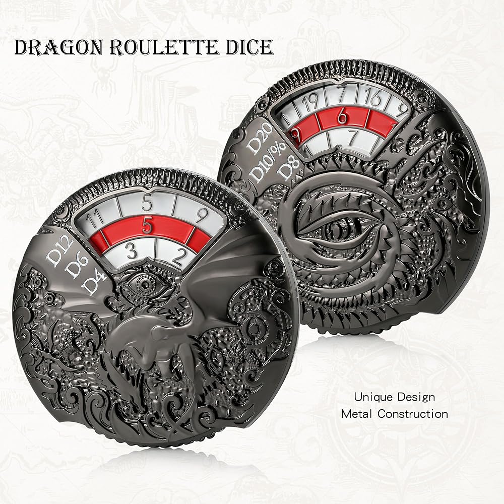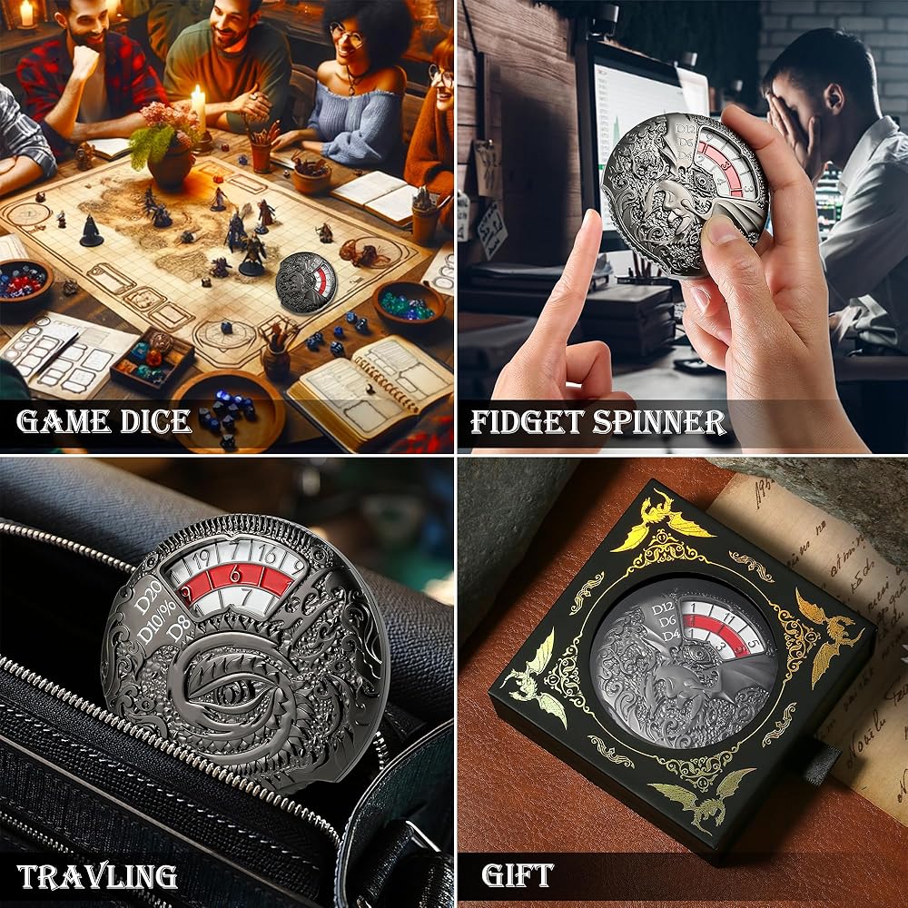 DNDND Dragon 7-in-1 Roulette Spinner Metal Dice Set with gift box.