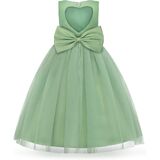 Charming Design: This flower girl dress features a classic ball gown silhouette with a full tulle skirt, perfect for twirling and dancing. The back showcases a heart-shaped cutout, adding a touch of sweetness, finished with a large bow for added elegance