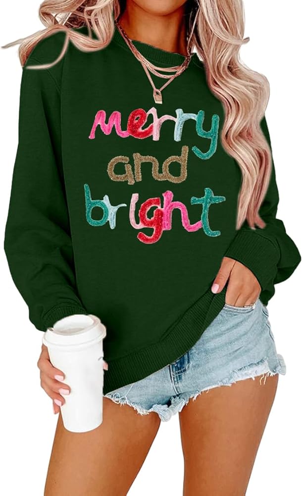 FEATURES:Looking for a cozy and festive addition to your winter wardrobe? Look no further than the MOUSYA Merry and Bright sweatshirt! Made for women, this oversized crewneck long sleeve sweatshirt is the perfect casual loose pullover top for chilly fall and winter days. Whether you're exchanging Christmas gifts with loved ones or spreading holiday cheer around the office, this sweatshirt is the perfect happy Christmas costume casual round neck clothes for any casual setting.