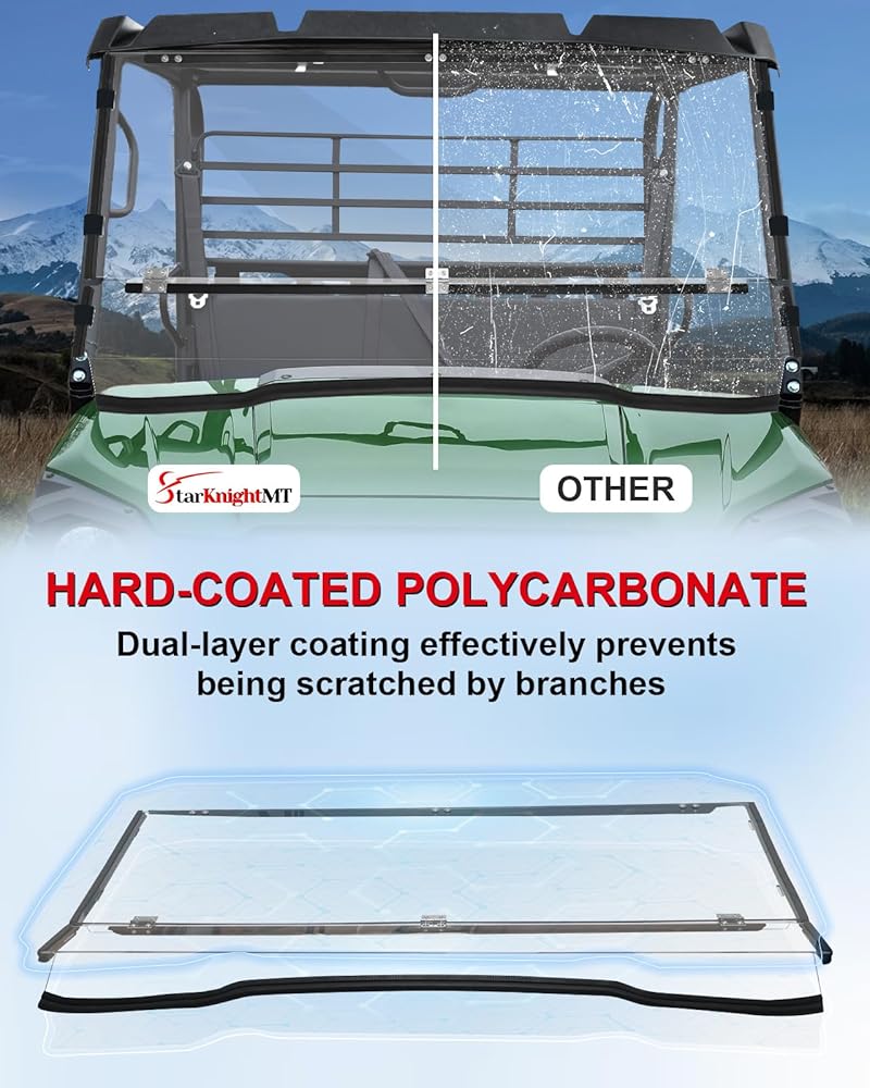 StarknightMT Heavy Duty Anti-Scratch Mule Pro Flip Down Windshield Compatible with 2026-2015 Kawasaki Mule Pro FXT / FX / DXT / DX Fold Window Hard-Coated Polycarbonate 250X Stronger Than Glass