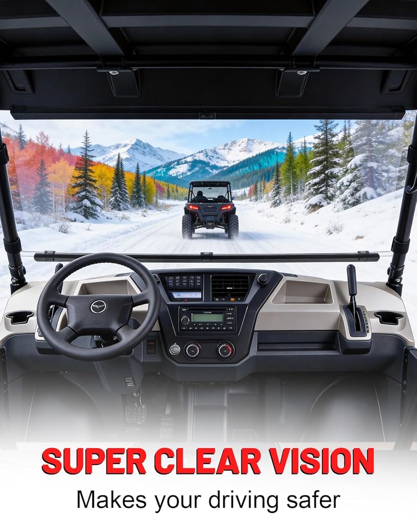 【ANTI-UV & HIGH-TRANSMISSION】This mule pro front windshield can be up to 99.99% Anti-UV due to its special coating, this mule pro windshield can protect you from getting hurt by heavy sunshine. Also, this Mule PRO windshield is up to 93% high light transmittance, ensuring a clear vision along the journey