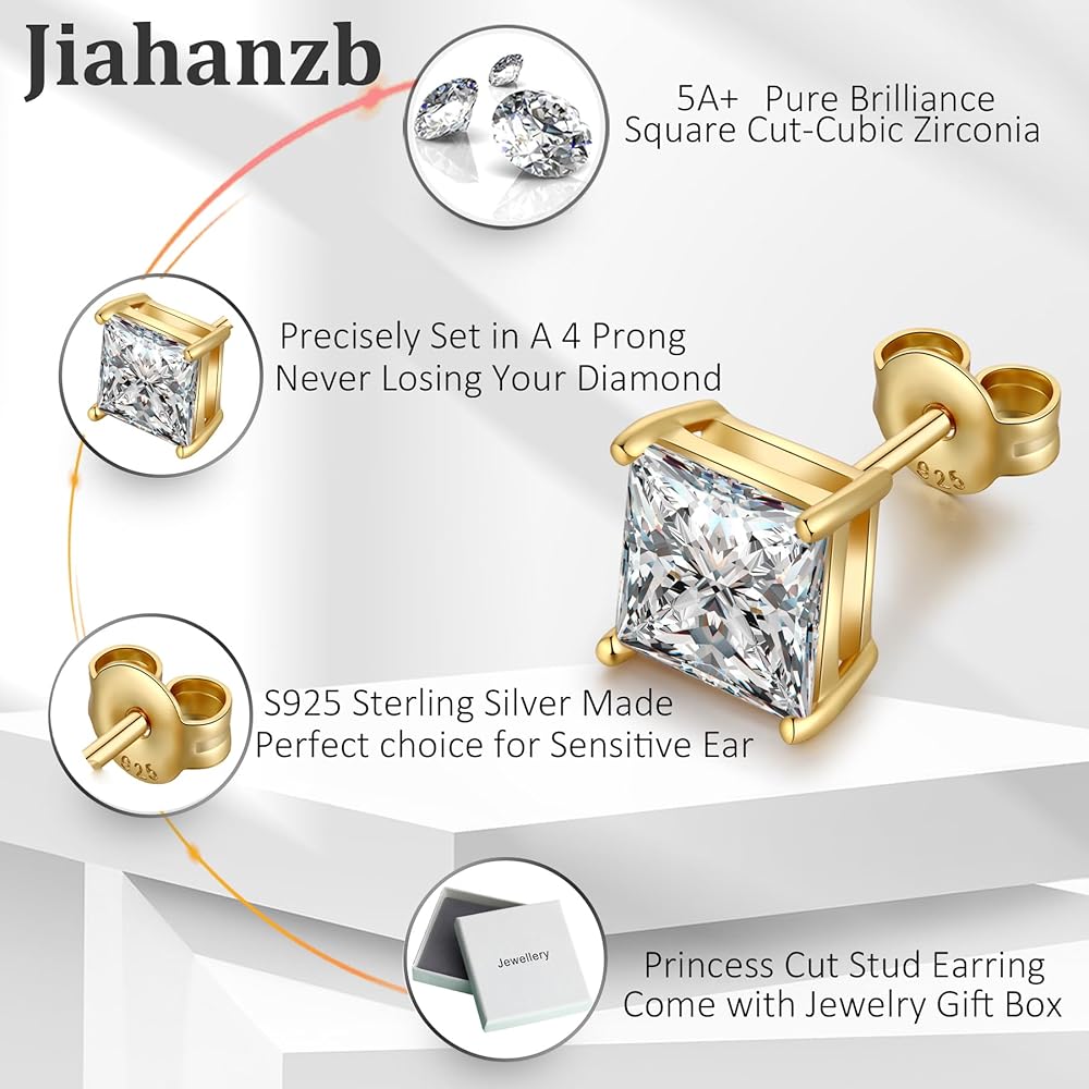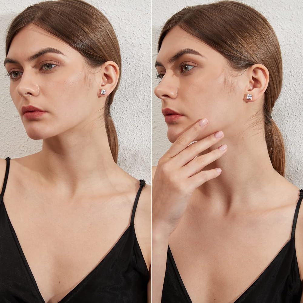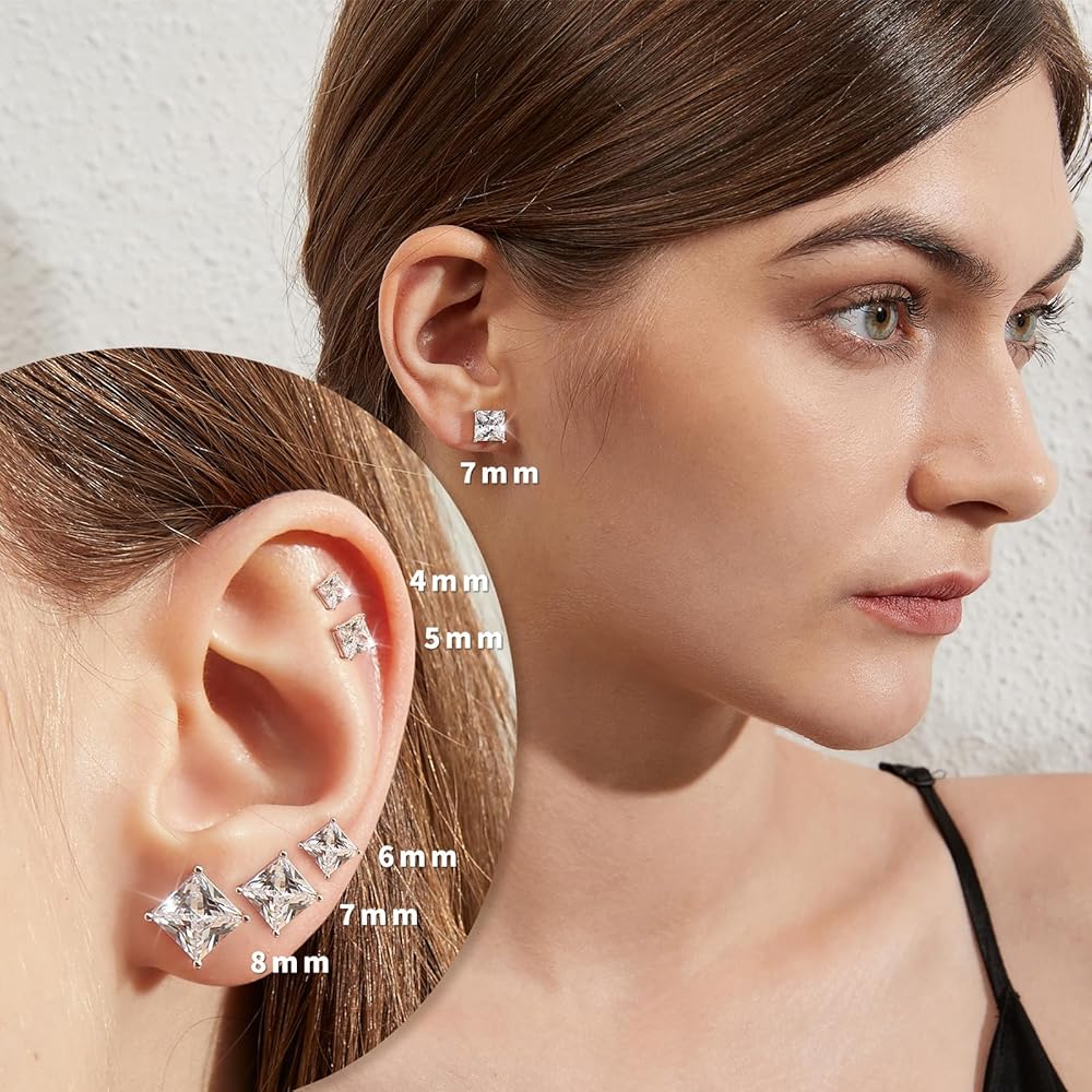 For Her/Him: 925 Sterling Silver Cubic Zirconia Princess Cut Diamond Stud Earrings For Lover, Family, Friends And Earring Collector On Vacation, Festival or Any Special Day.