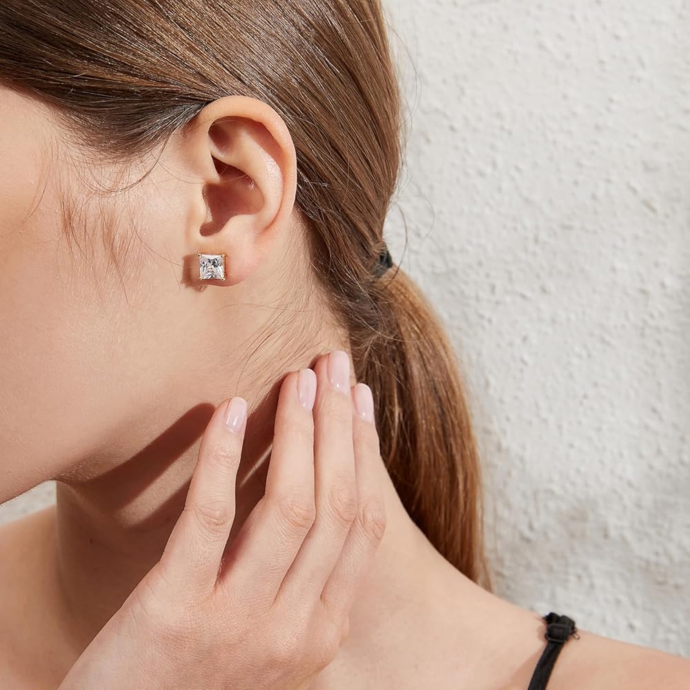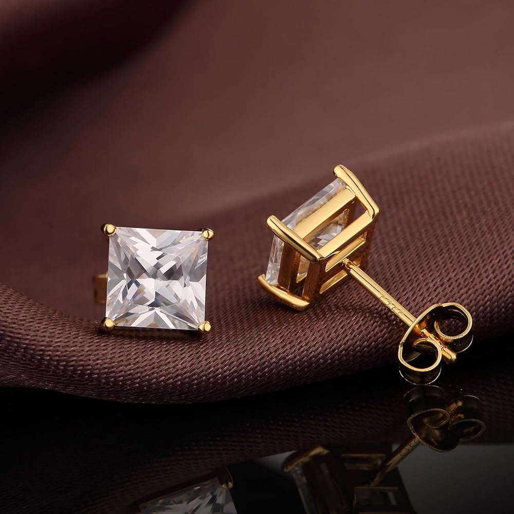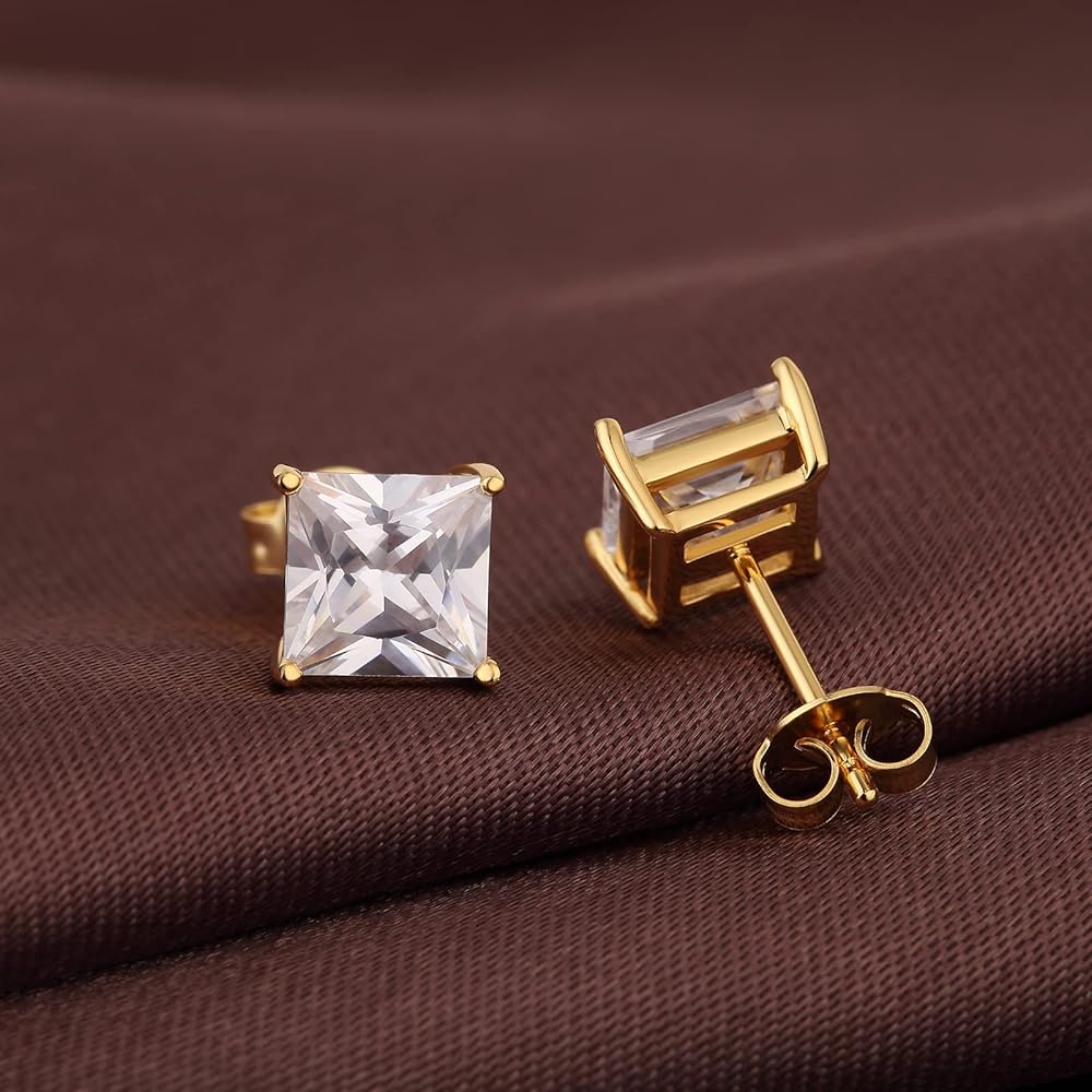 Come with Jewelry Small Bag: Square Earrings Women Diamond Earring Men Stud Earrings Cubic Zirconia Stones are Set in 4-Prong Basket Settings with Butterfly Back.