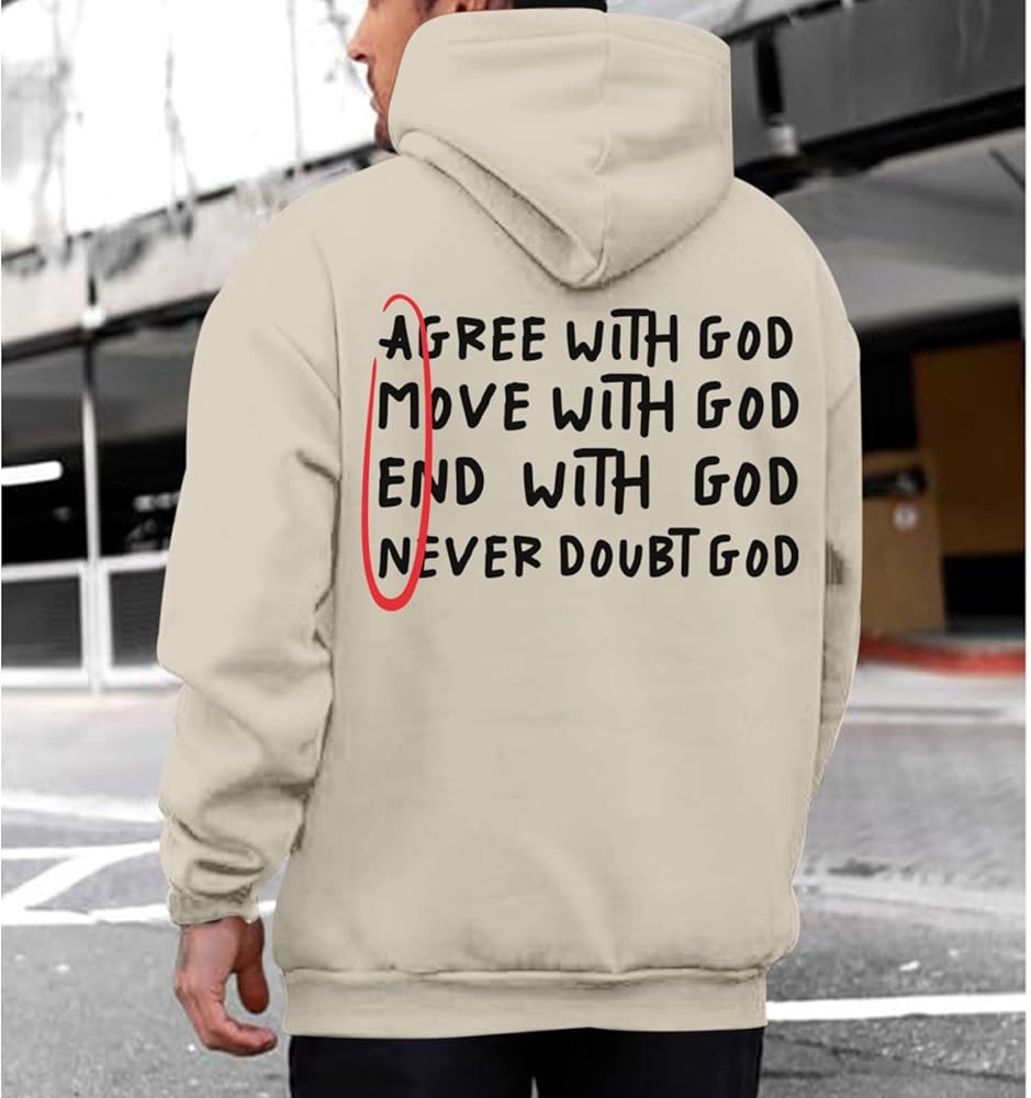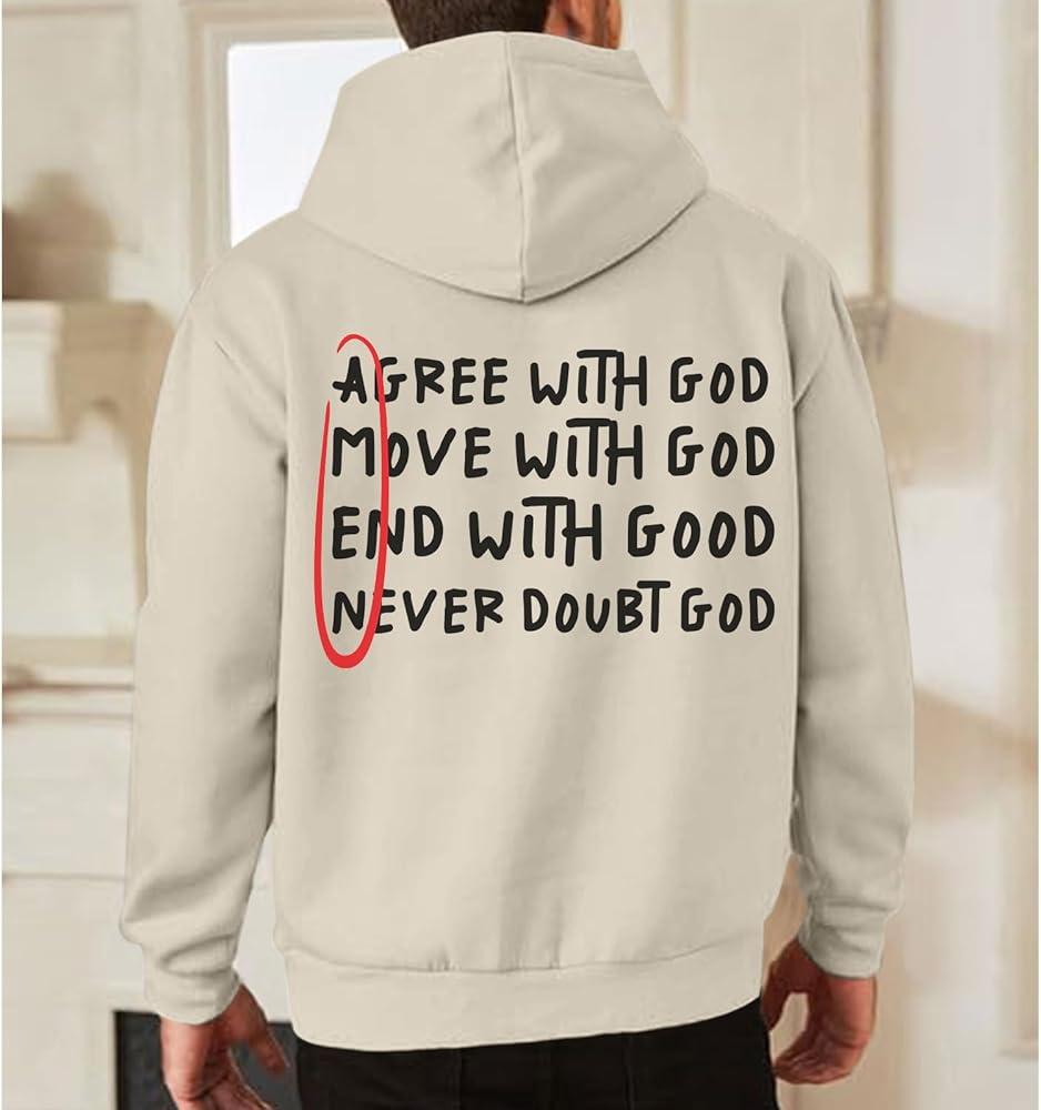 Features Design: Agree with God Hoodie, Christian Sweatshirt, Funny Faith Sweatshirts, Religious Pullover Top, Inspirational Letter Graphic Print Hoodies, Casual Long Sleeve Pullovers. The Men's Vintage Religion Agree with God Sweatshirts Can Be Matched with Cargo Shorts, Jeans, Short Pants, Sweatpants to Create A Fashionable Style, Adding to Your Personal Charm And Standing Out in The Crowd