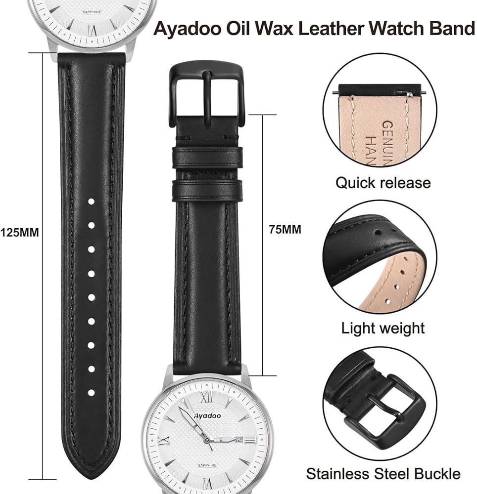 [Full Grain Leather Material] Ayadoo choose the Grain Oil Wax Leather to made this special watch strap. Soft and lightweight are the biggest advantages on this strap. It's unique design and multiple colors can make your watch stand out effortlessly.