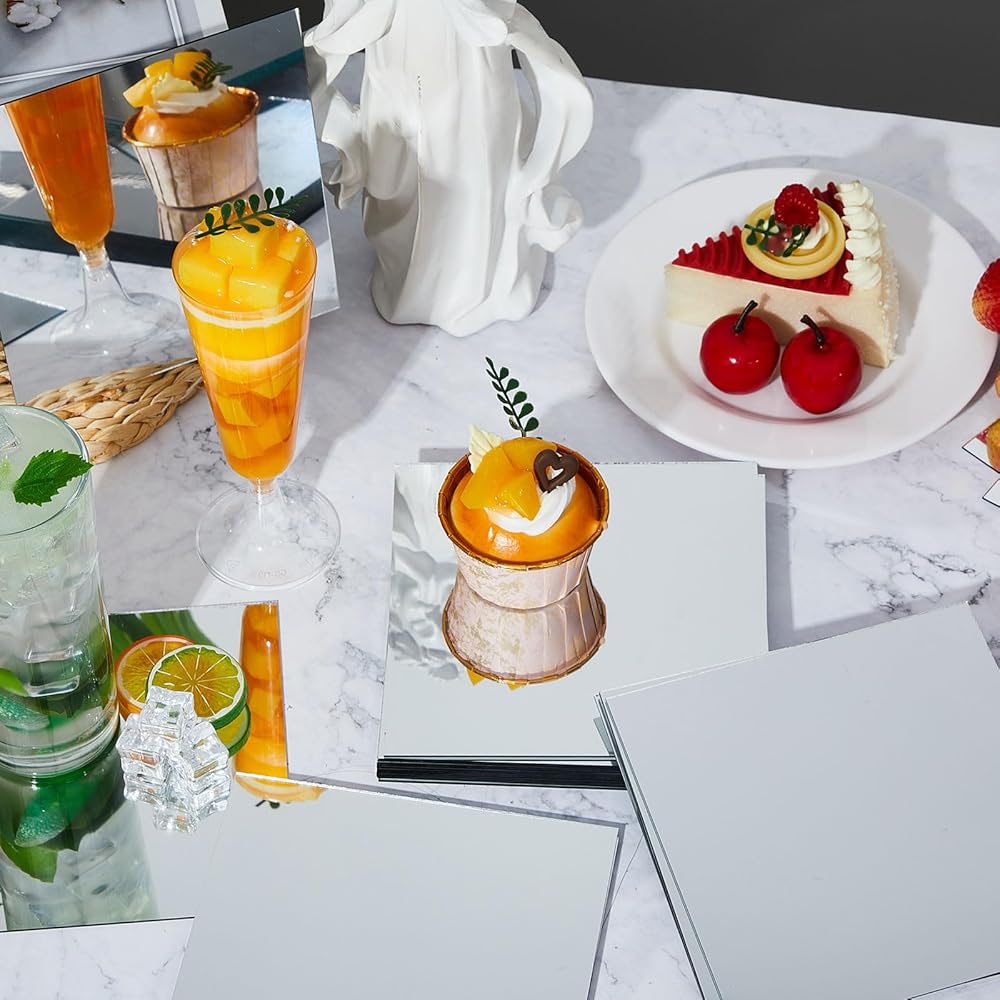 Ideal for Crafting: ideal for DIY, the glass tiles can adorn picture frames, jewelry boxes, or art projects to give a elegant touch to gifts, also serving as reflective square edge dining table center mirror, and can significantly enhancing the atmosphere of wedding tables or party decorations