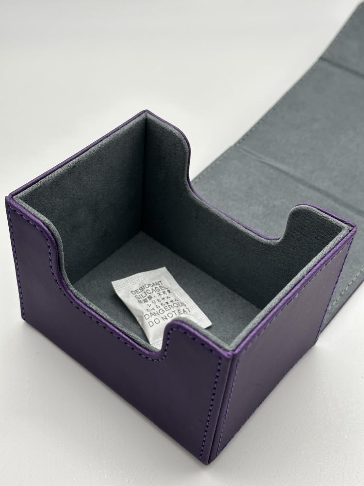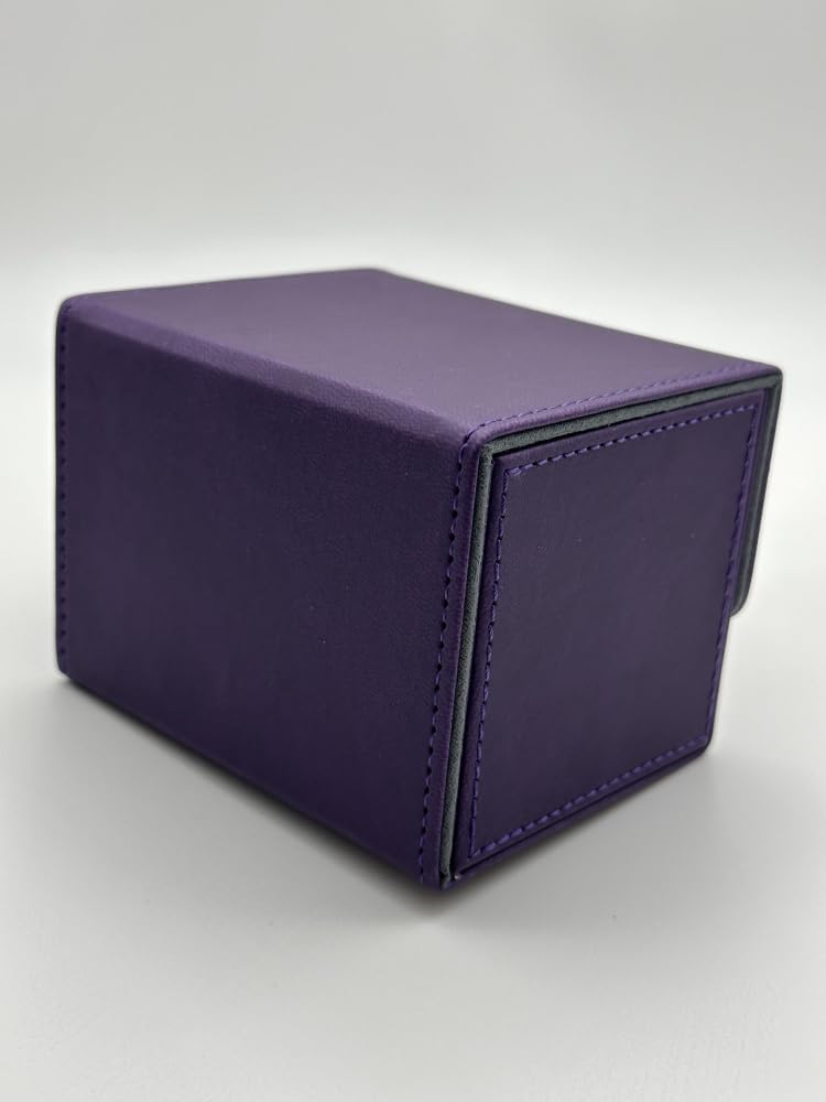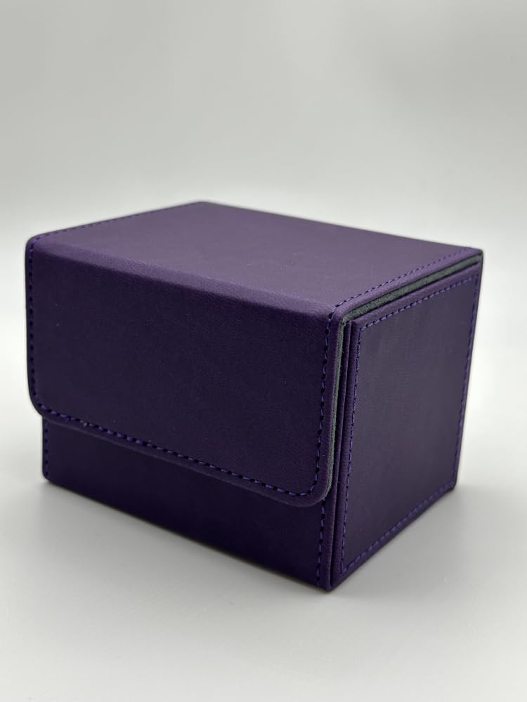 1pc Card Deck Box for MTG Cards, Card Storage Box Fits 100 Single Sleeved Cards, PU Leather TCG Card Deck Case Holder for Magic Commander Yugioh (Sideloading Purple Color)