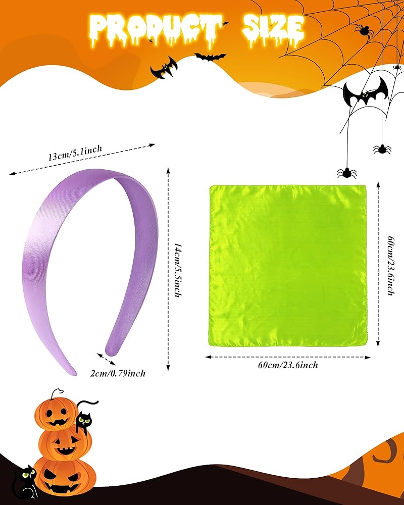 Perfect for Cosplay and Halloween Parties: Whether you're attending a cosplay event or a Halloween party, this accessory set is a versatile addition to your costume. The green scarf and purple headband can be easily incorporated into a variety of Halloween looks, making it a practical and stylish choice.