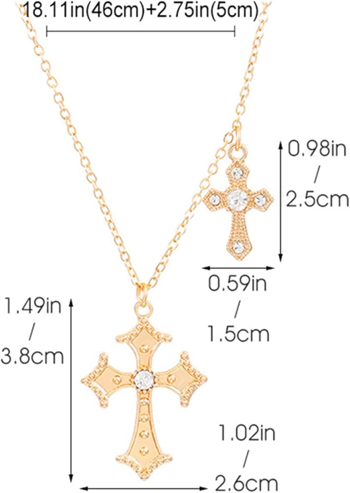 Double Cross:This dainty silver cross necklace consists of a unique two cross pendants in different sizes with high quality cubic zirconia for a sparkling and regal look. It is timeless and versatile, perfect for everyday wear or dressing up for special occasions. The adjustable chain allows you to find the length that best suits your style.