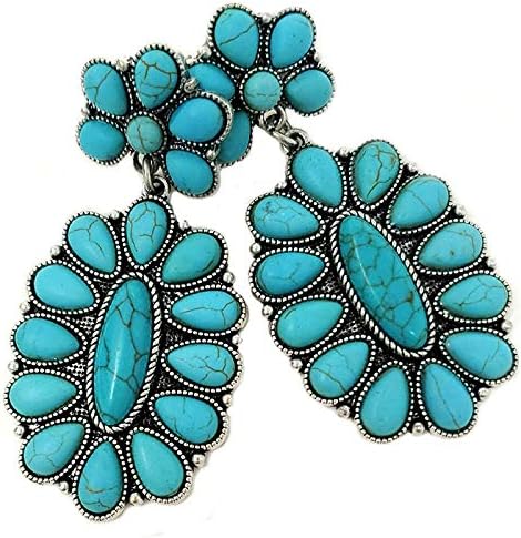 Here is Western Turquoise a pair of dangle Post Earrings: Squash Blossom