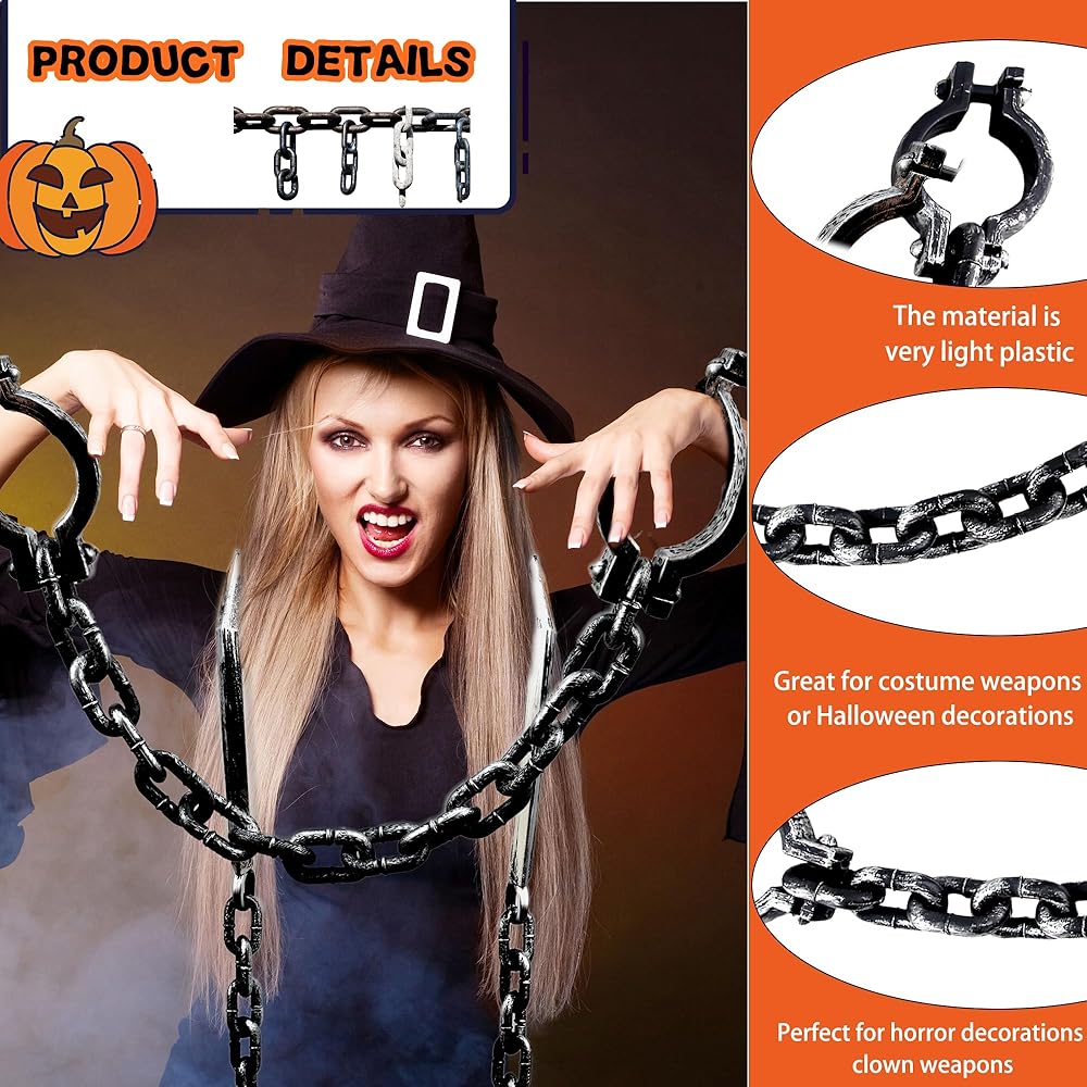 【Wide Application】: These Halloween plastic chains aren't just limited to Halloween or spooky themed events. They can also be used for theater productions, costume contests, role plays, theme parties and store decorations for any holiday. It can help you decorate horror scenes and hang them on the wall or door to add more atmosphere. Leave unforgettable memories for yourself