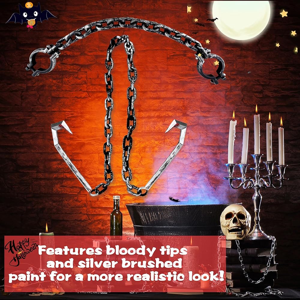 【What Will You Get】: You will receive 2 pieces of Halloween chains, one with double hook toy and one prison chain with shackles, each link of the toy is removable. So you can shorten it or combine it with other links if needed. Perfect for the spooky atmosphere of Halloween. It is the perfect prop for Halloween, adding more festive atmosphere