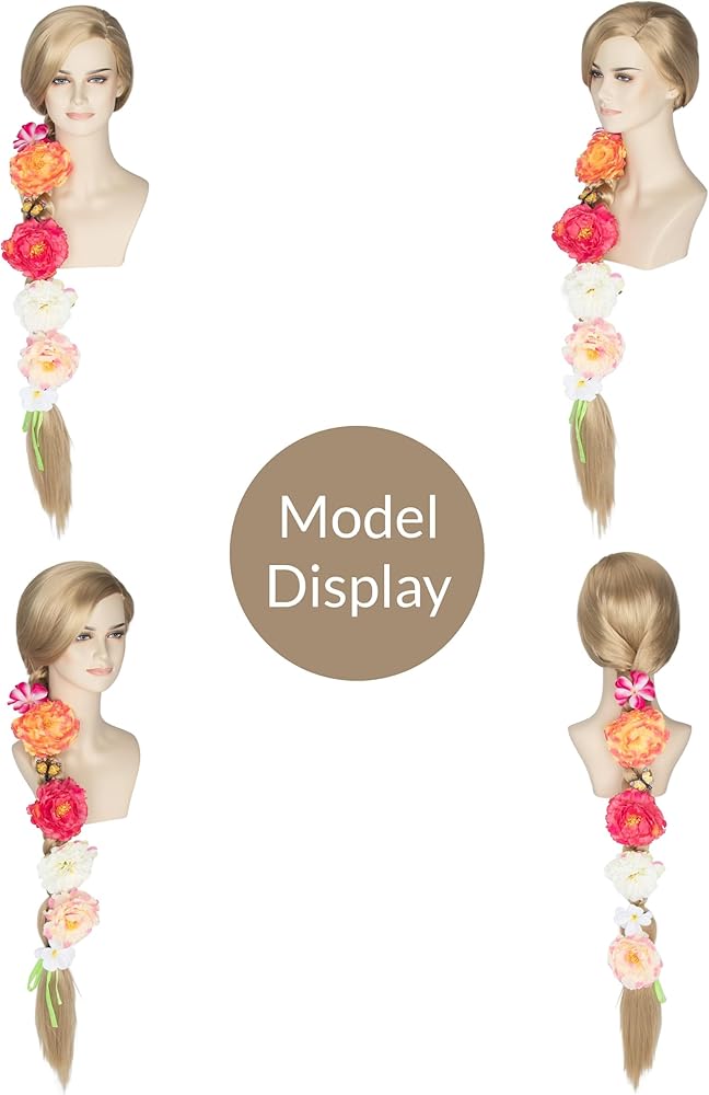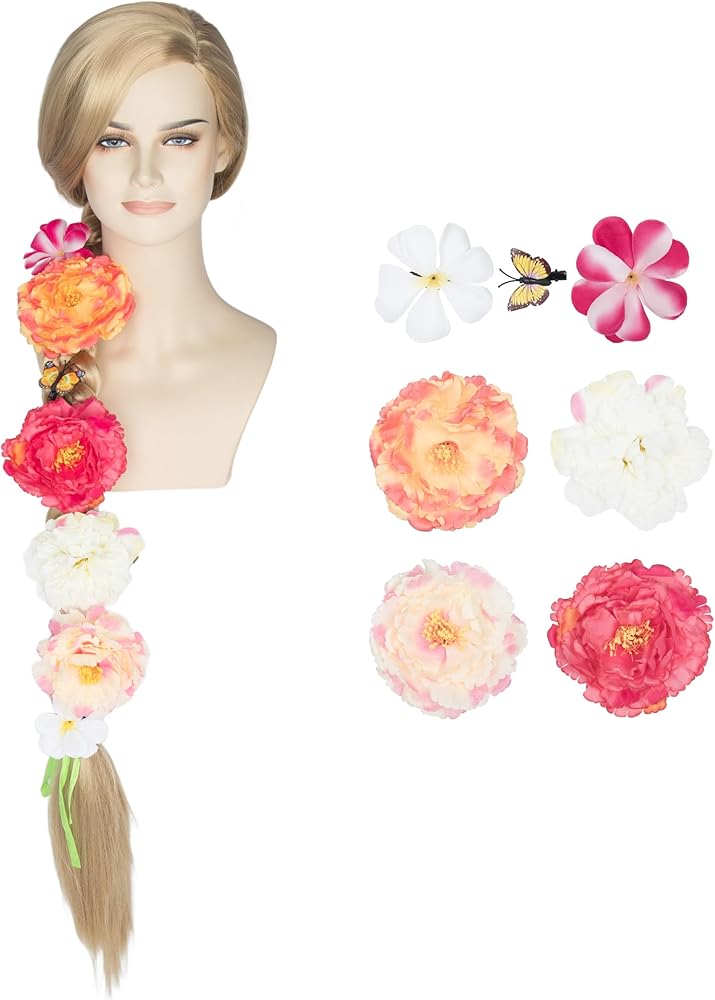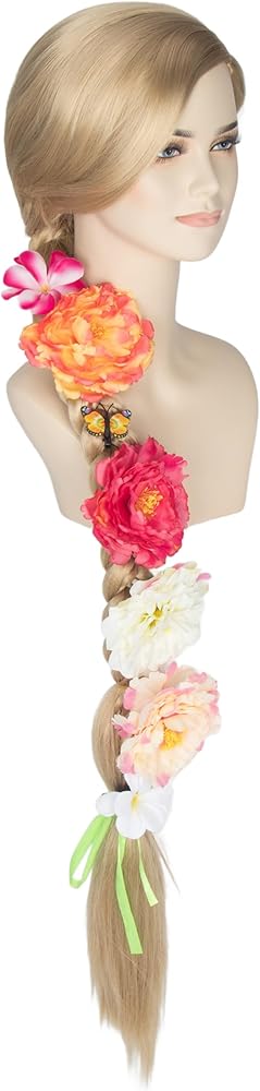 Package:1pc long princess wig + 1pc hairnet + 12pcs flowers