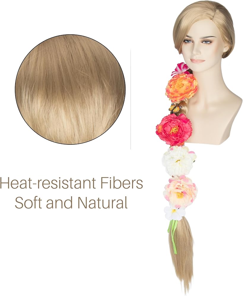 Material: Synthetic Fiber (Can be ironed and restyled under 160℃), It is both natural looking and soft touch, smooth princess wig and matt like human hair, resistant and breathable, don't harm your own hair!