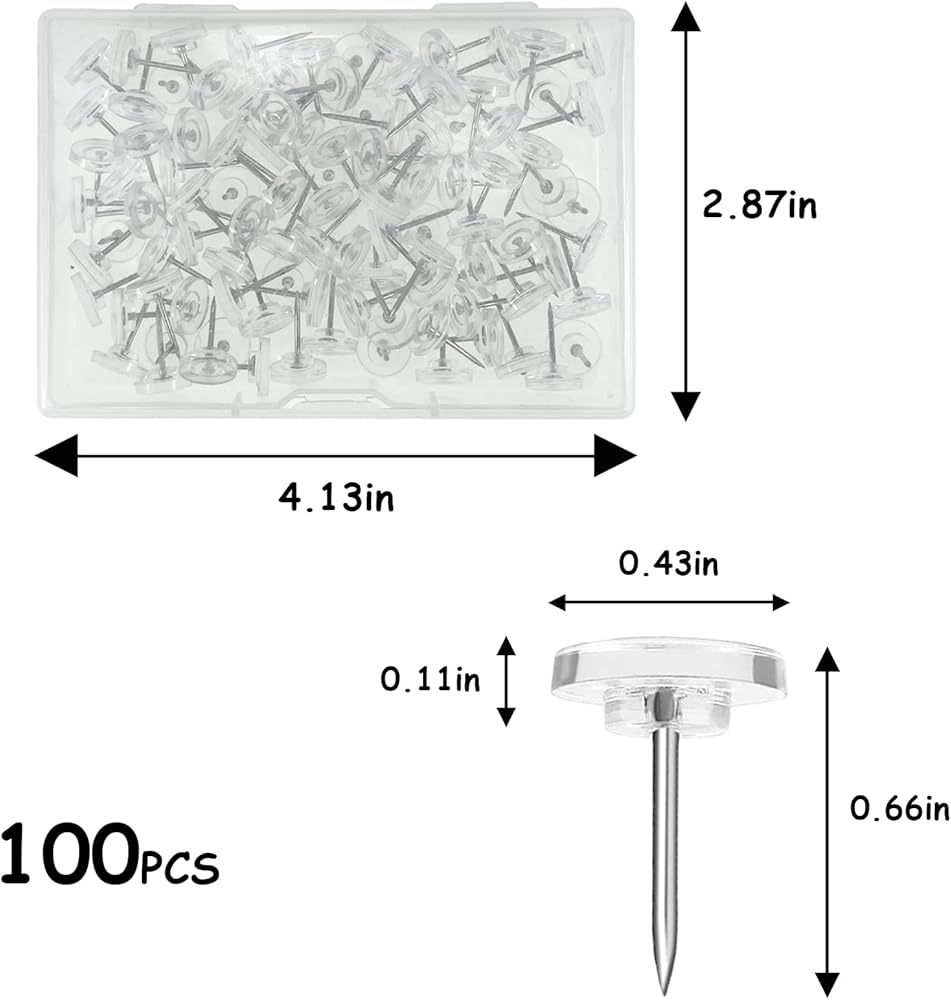 Perfect Size: Our transparent push pins are approximately 0.66" with a transparent round head measuring 0.43" wide and a steel tip 0.43" long - perfect for your office needs
