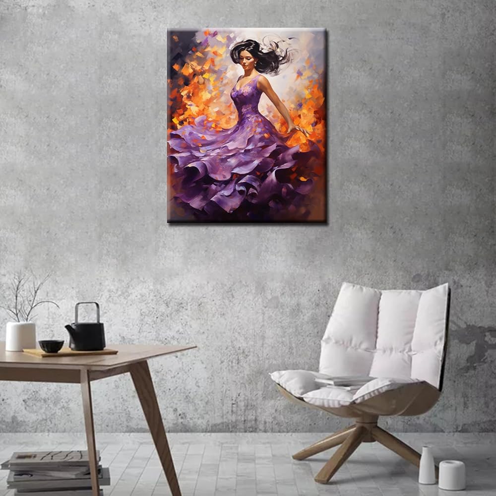 Female Dancer in a Purple Dress Paint by Numbers Kits 16x20 inch Canvas DIY Oil Painting for Kids, Students, Adults Beginner with Brushes Acrylic Pigment Graffiti Flamenco Women (without Frame)