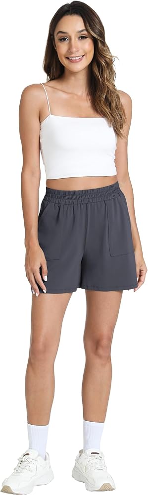 Stretchy for free movement. Comfortable elastic waistband. Two pockets are large enough to keep your phone, keys, or other personal items.