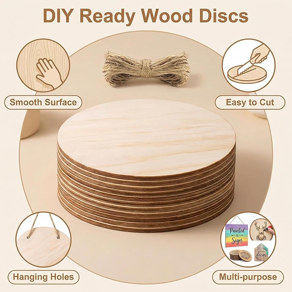 10 Pack Blank Unfinished Round Wood DIY Crafts Signs 2mm Basswood Sheets for Laser Cutting 12 Inch Wooden Door Hanger Sign DIY Painting Halloween
