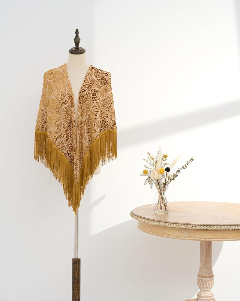 High-Quality Velvet Blend: Our velvet shawl wraps are crafted from a premium blend of 50% nylon and 50% artificial silk, creating a luxurious and stylish texture with the sheen of velvet. This material combination provides features such as ventilation, softness, lightness, and comfort, ensuring a cool feeling even in hot weather