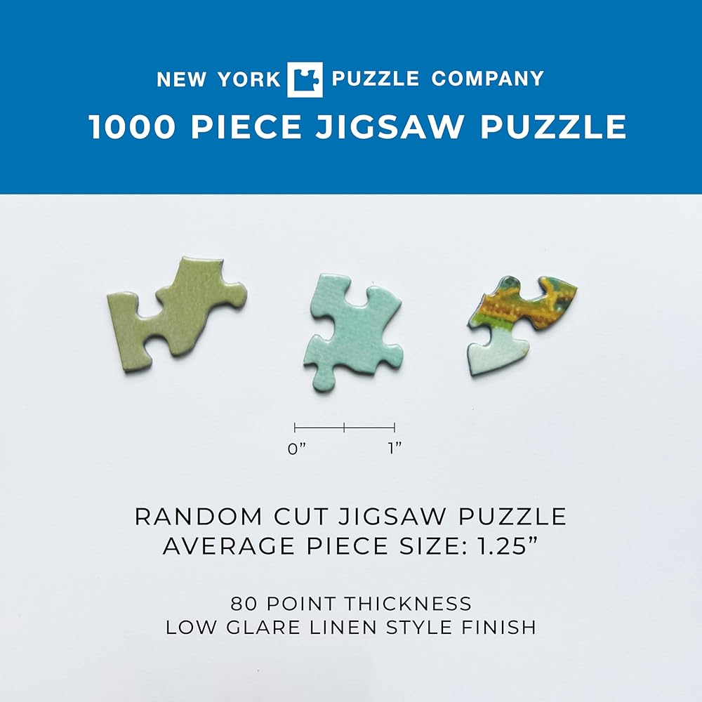 1000 PIECE JIGSAW PUZZLES: New York Puzzle Company's 1000 Piece Jigsaw Puzzles are perfect for intermediate and advanced puzzlers looking for a challenge. Made from high-quality, sustainable materials, these puzzles are ideal gifts for those who love a stimulating puzzle experience. Additionally, they provide an exciting and challenging activity for family and friends to complete together.