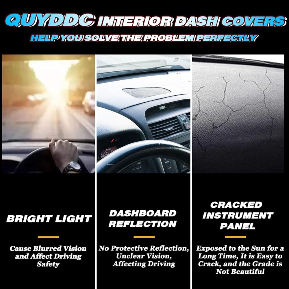 【MATERIAL UPGRADE】- Made with five layer composite technology and flannel, the QUYDDC Dashboard Cover offers a superior level of durability and comfort, ensuring long-lasting protection for your car's dashboard.Upgrade your car's interior with a high-quality Dashboard Cover that not only enhances the aesthetics but also provides enhanced protection against scratches, sun damage, and wear and tear.