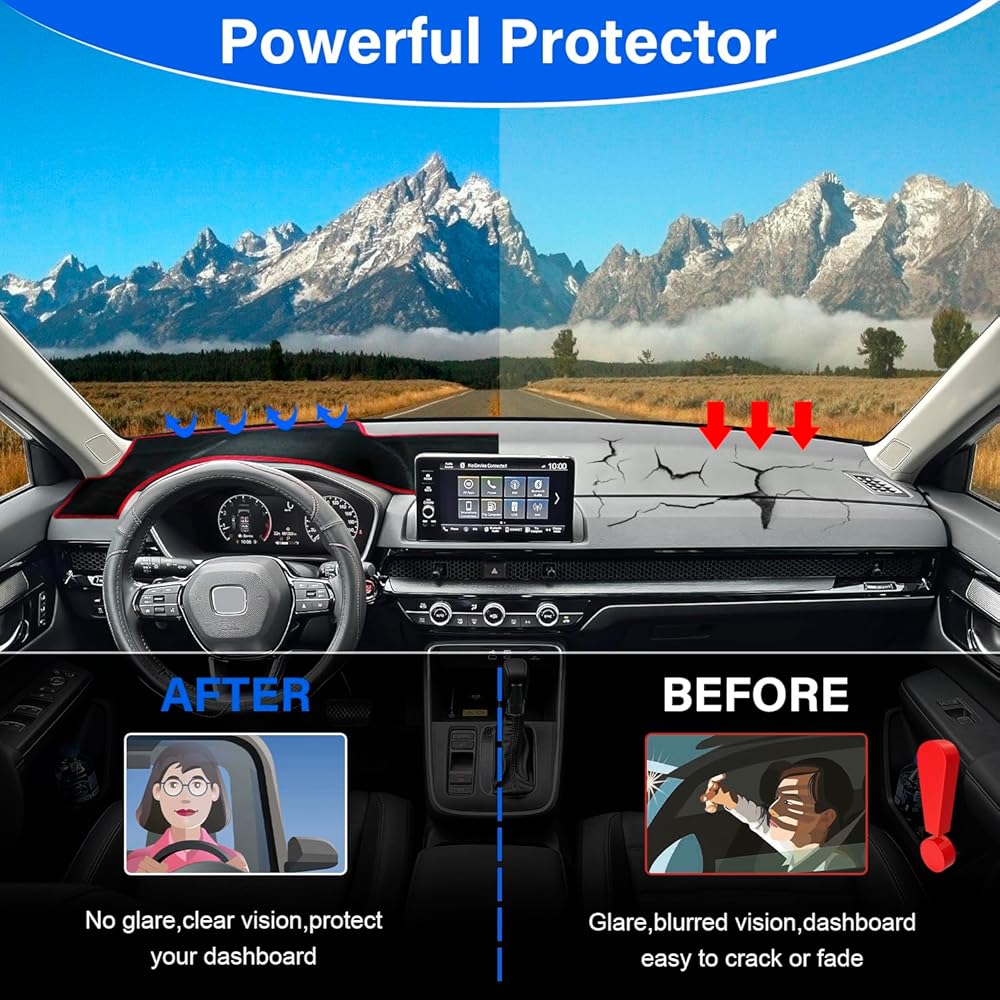 Dash Cover for Honda CRV 2026 2025 2024 2023 Dashboard Cover Mat Nonslip Pad Sunshade Glare UV Rays Protector (Without HUD, Red Trim)