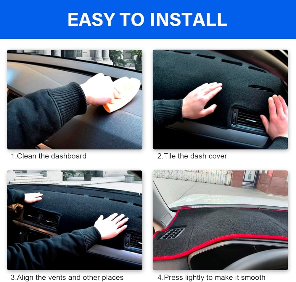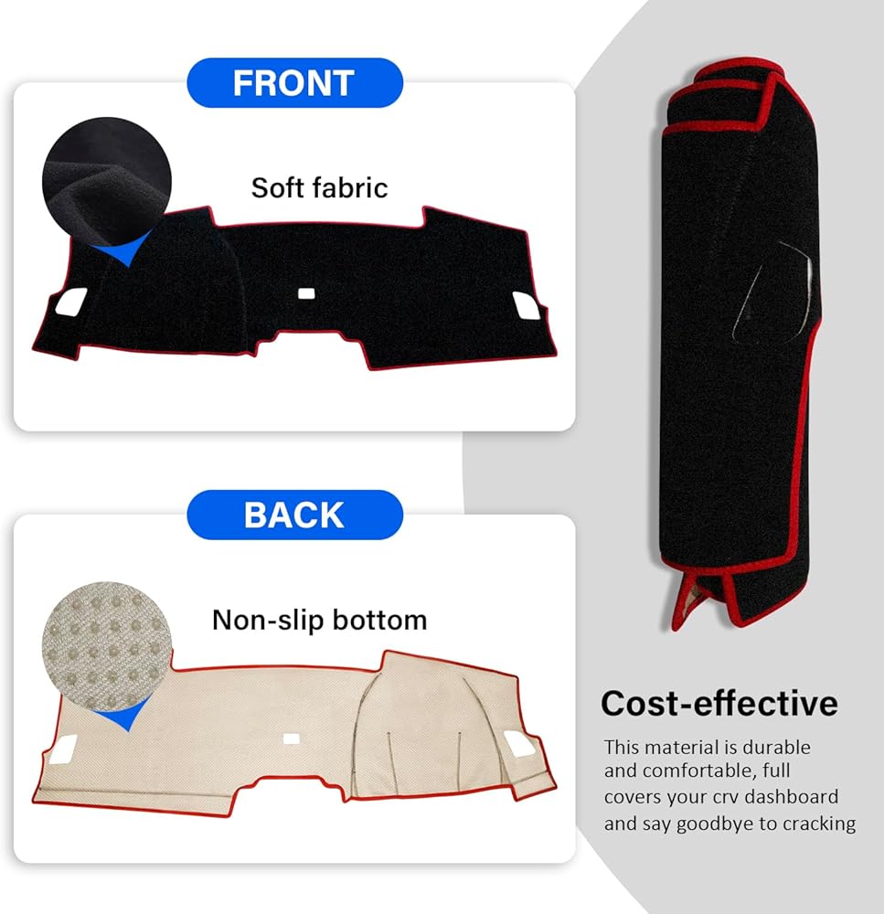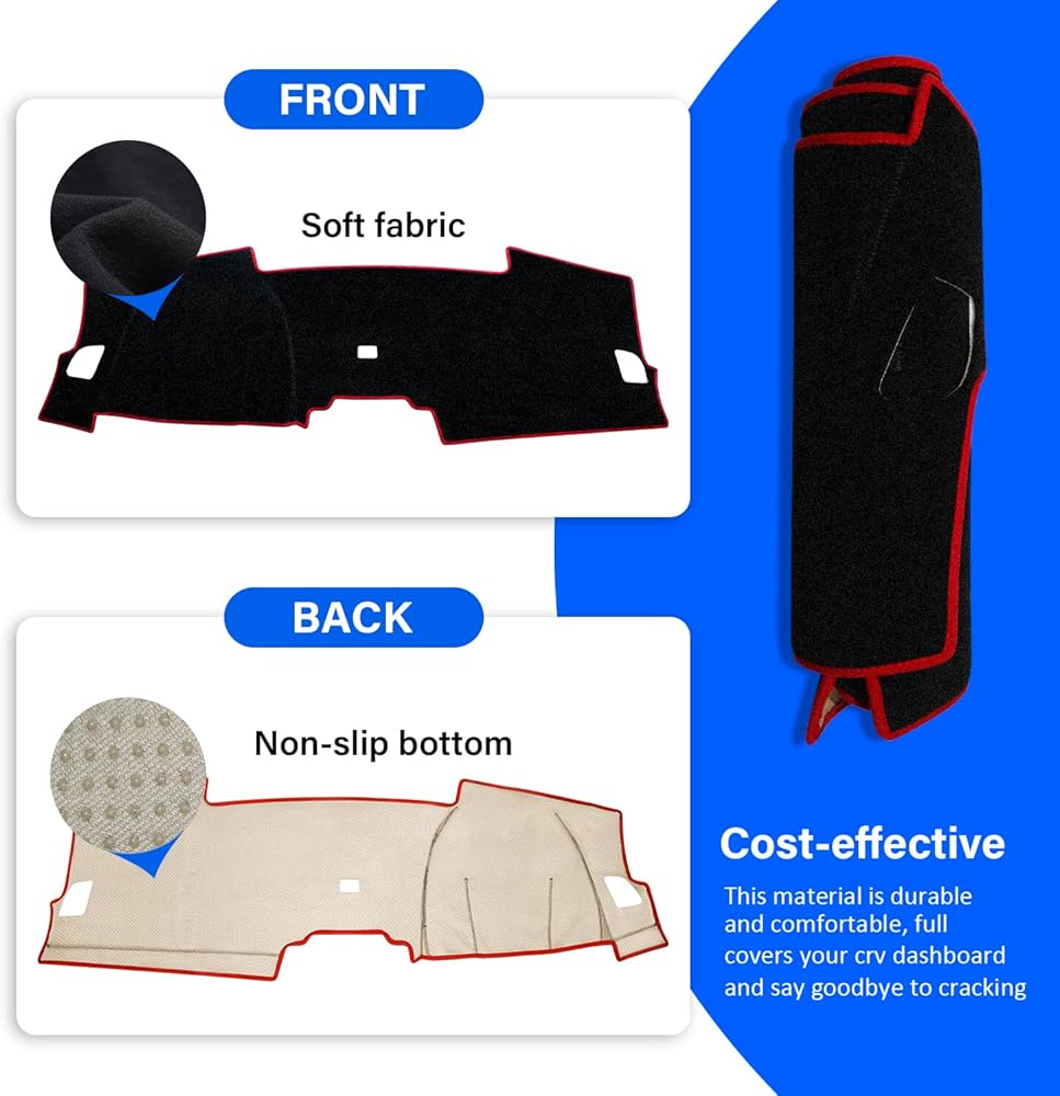 • Effortless Installation---No adhesives required,just place the dash cover straight on the top of the dashboard ,saving your time and effort while enhancing and protecting your vehicle's interior .Don't worry about it shifting ,the CRV dash cover designed with densely silicone little dots on the back side, it features a nonslip that can better anti-slip, making it stable and immovable