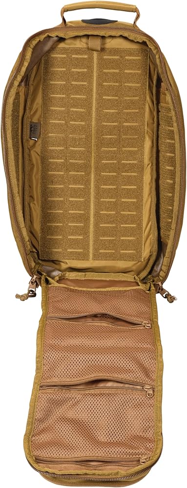 TT MODULAR SLING PACK 20 is a modular pack with diagonal shoulder strap that can be carried on the right or left sides. The main compartment of the Sling Pack can be opened completely and the rear compartment has lateral access. The Sling Pack also has two front pockets. On the front and sides is laser-cut MOLLE. The shoulder strap can be stowed away and two handles make it easy to grab. Inside the Sling Pack are large MOLLE hook and loop panels for attaching accessory pouches. The TT Modular Sling Pack 20 received a Silver Score in the 2020 NTOA Member Tested and Recommended Program. Reviewed by law enforcement officers in the National Tactical Officers Association (NTOA), the Modular Sling Pack 20 received an overall score of 4.31 out of 5.