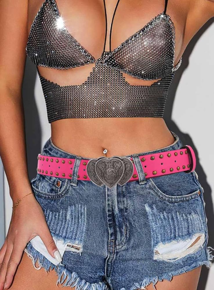 Cowgirls belts is suit for women waist size from 27in to 37in, belt width is 1.5in/3.8cm. It has a nice width and an elegant heart buckle, wear it make you look special.