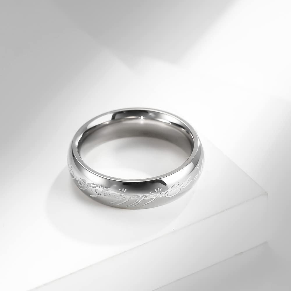 High polished The lord of the Rings ring is made of high quality titanium stainless steel. The inscription on the ring is very clear and luminous.The magic ring can glow in the dark(after absorbing enough light).The innerface and surface of the glowing ring are shiny and smooth.Long-lasting color,not allergic,rounded edge, comfort fit.