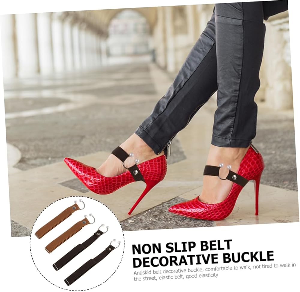 Detachable Elastic Anti-Slip Shoelace Straps for High Heels with Pearl Decoration Lightweight Shoe Accessories for Women 8.66 Inch Brown
