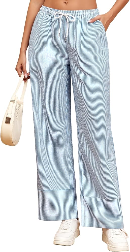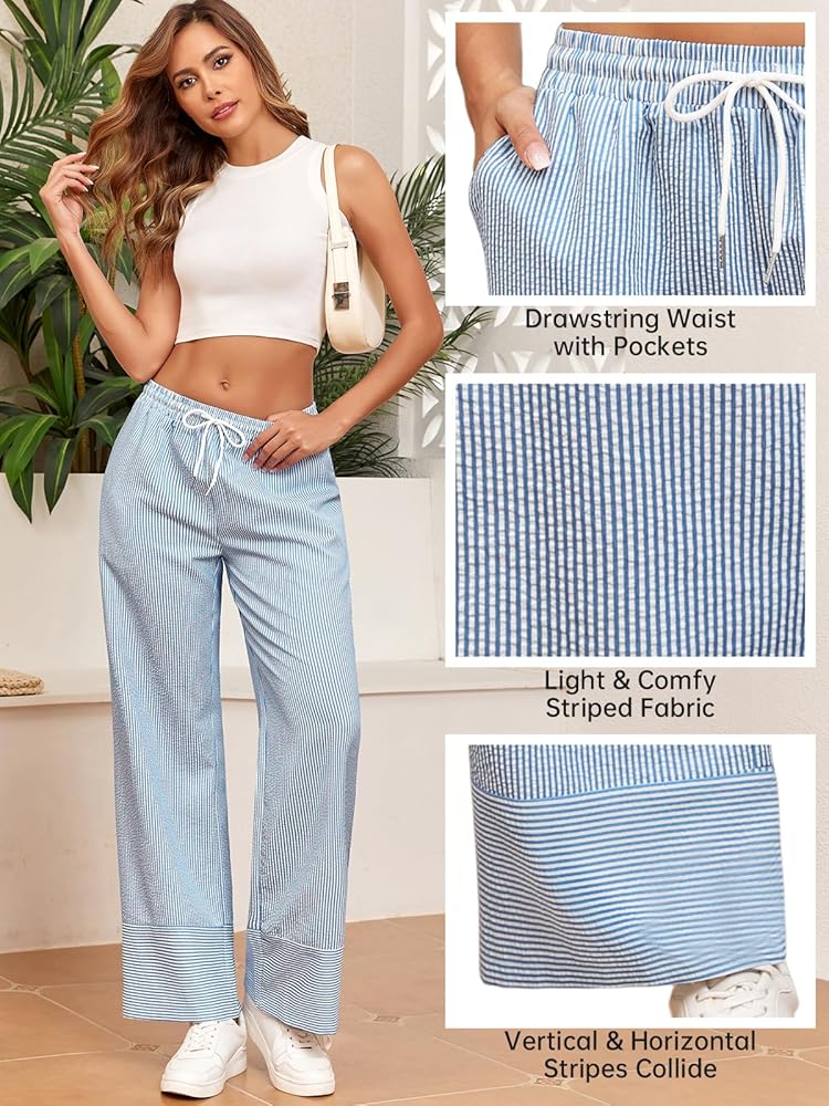 OCCASION:Pants for women striped is the perfect staple in women's casual pants, suit for casual outings, work office, school, travel, beach, loungewear, and suit for spring, summer and fall seasons