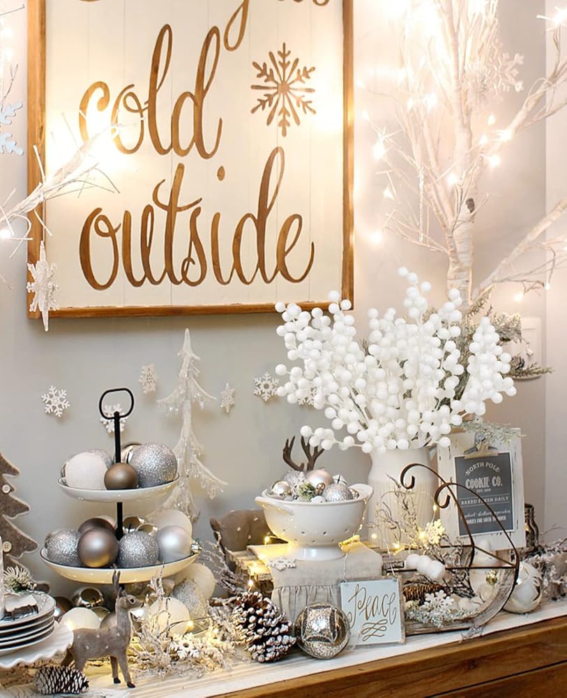 [Christmas Berries Decor] These holly berries are so festive and perfect for Christmas holiday decorating. You can put it directly into the vase to decorate also suitable for any wreath, garland, Christmas decoration or combination flower home decoration, through different combinations to create a unique Christmas decoration.