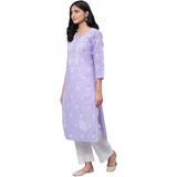 Kurta has a round neck, 3/4 sleeves, calf length, straight hem and side slits
