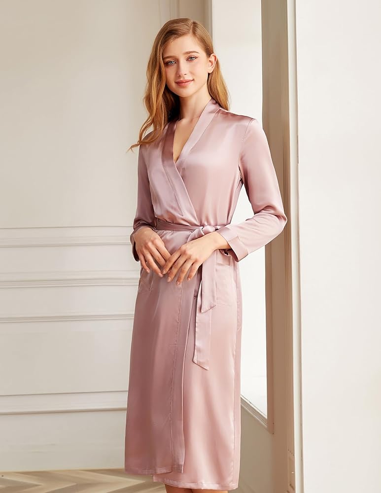 Fabric – This robe is made of 100% 19 momme mulberry silk, no any cotton or polyester