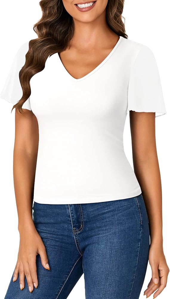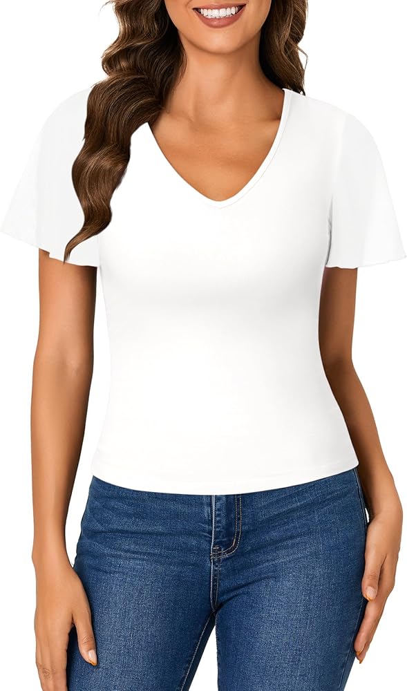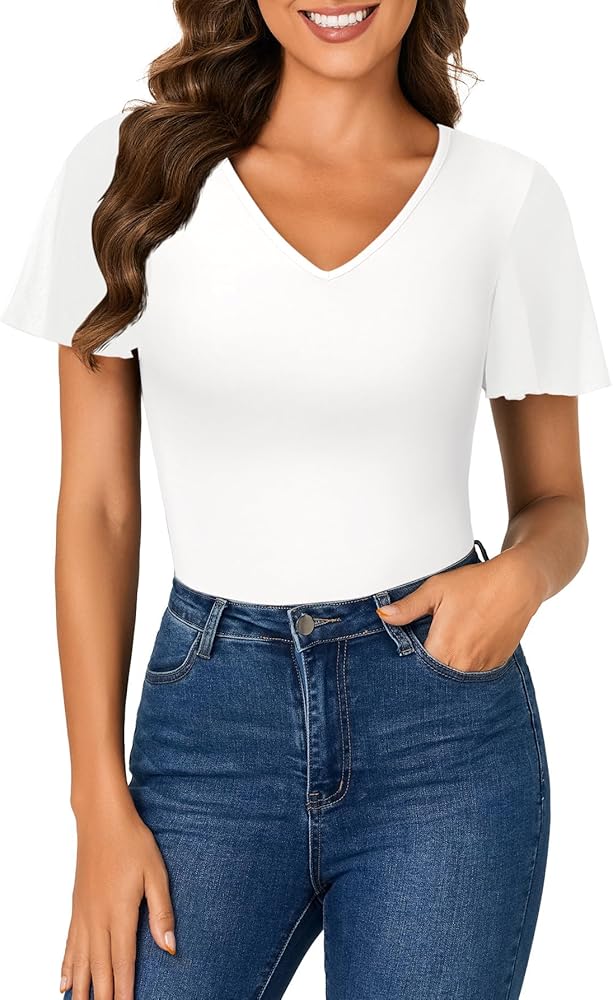 Occasions: Cute v neck t shirts, perfect for jeans, pants, skirts, shorts. Suitable for date night, going out, work, daily life, leisure, party, vacation, evening out, etc, highly recommend.