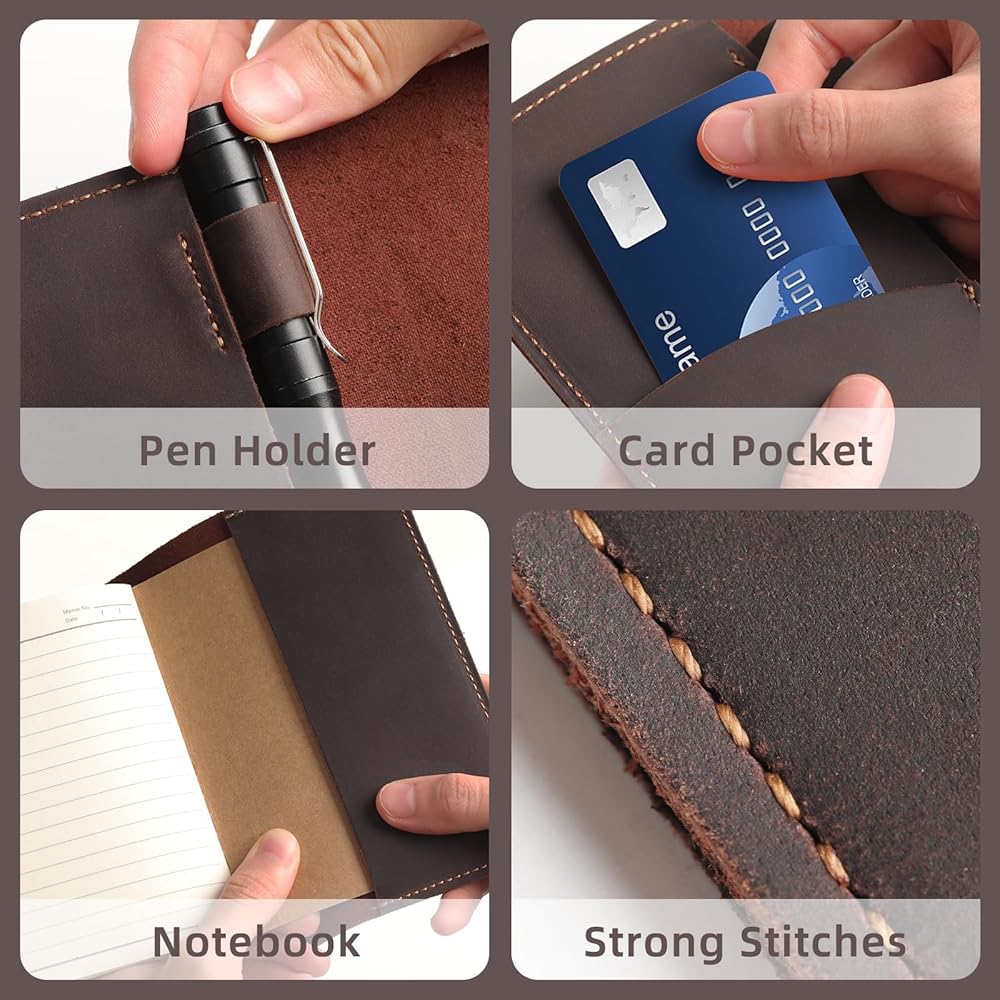 Versatile Design: Suitable for all 3.5" x 5.5" Field Notes, Moleskine Cahier Journals, and similar-sized notebooks, this cover can also double as a passport wallet and a holder for credit cards or business cards.