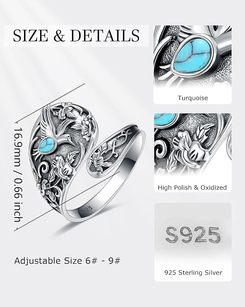 Experience the timeless beauty of the JZSANTI Turquoise Feather Spoon Ring. Crafted from sterling silver, this ring features a striking feather design adorned with a vibrant turquoise gemstone. The intricate detailing and vintage-inspired style make it a standout accessory that effortlessly blends boho chic and elegance. Perfect for stacking or wearing solo, this handmade statement ring adds a touch of bohemian flair to any outfit. Whether you're dressing up or keeping it casual, this versatile piece is sure to become a cherished addition to your jewelry collection. Celebrate your unique style with the JZSANTI Turquoise Feather Spoon Ring.