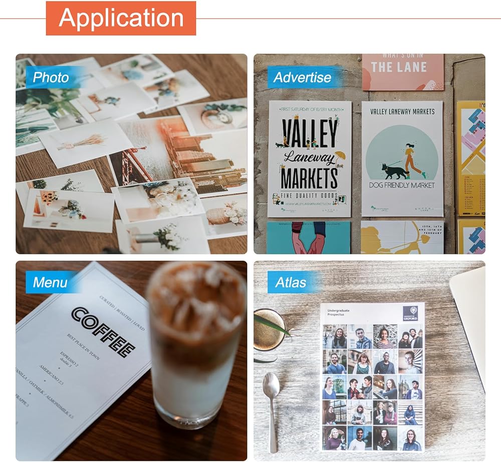 Clear sticker laminate sheets glossy cold laminating film, widely used in photos, calligraphy and paintings, posters, advertising brochure, various pictures, documents, information, menus, specimens, etc. Self seal laminating pouches can protect the ink and content of the oil brush, making the printing surface scratch-resistant and more durable. Self Adhesive laminating sheets, safe and odorless.