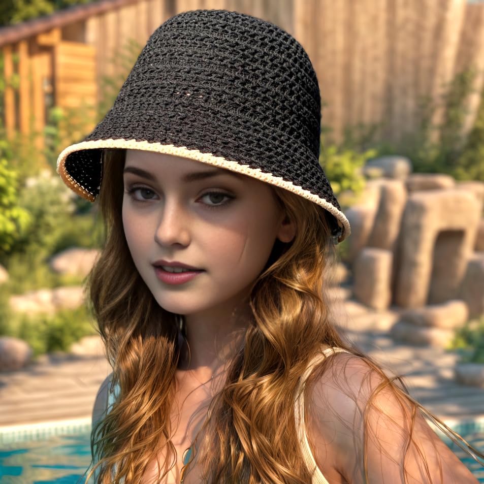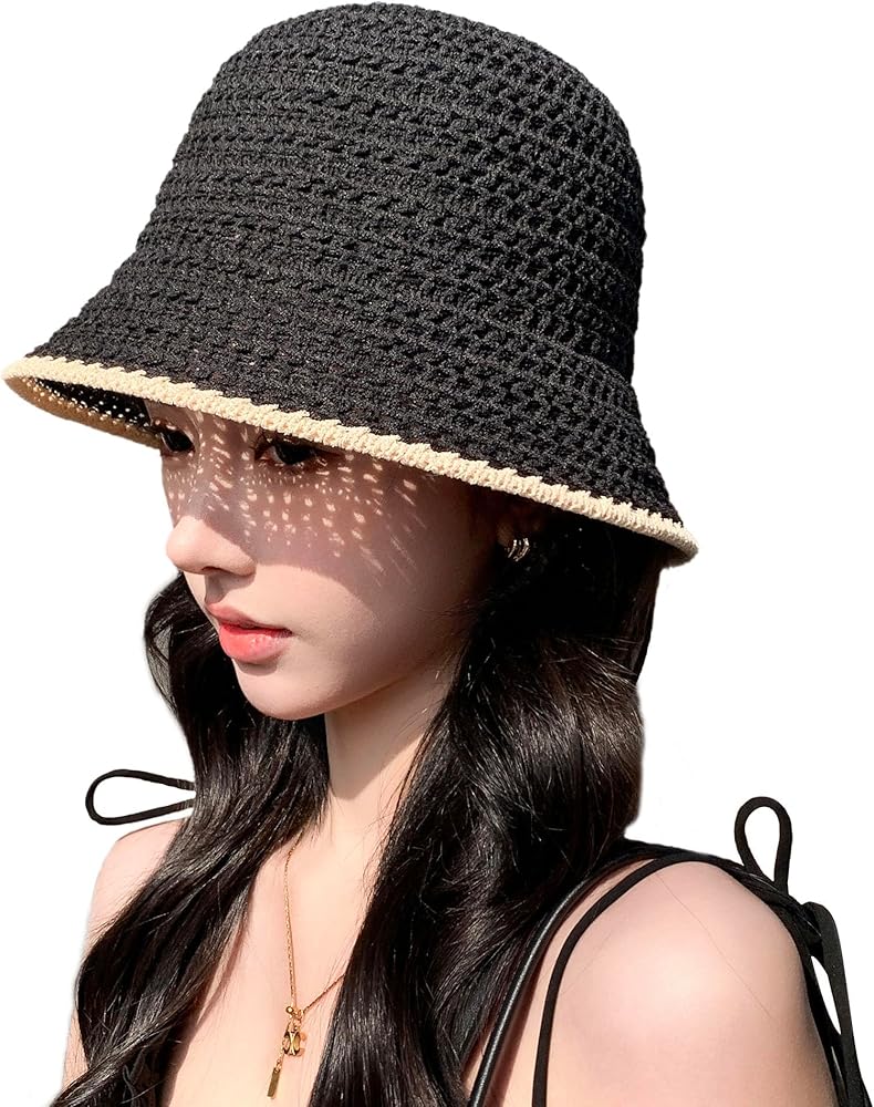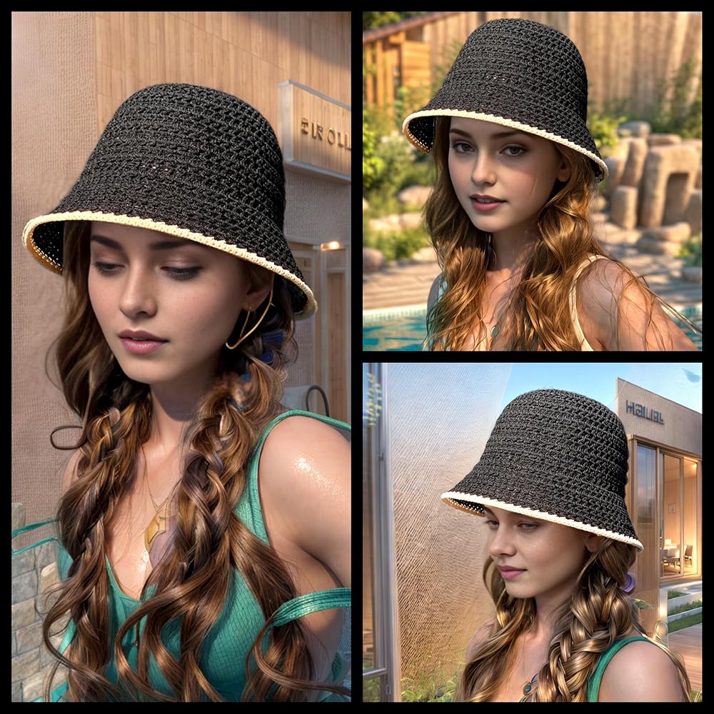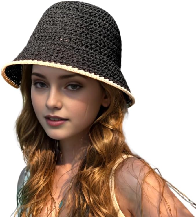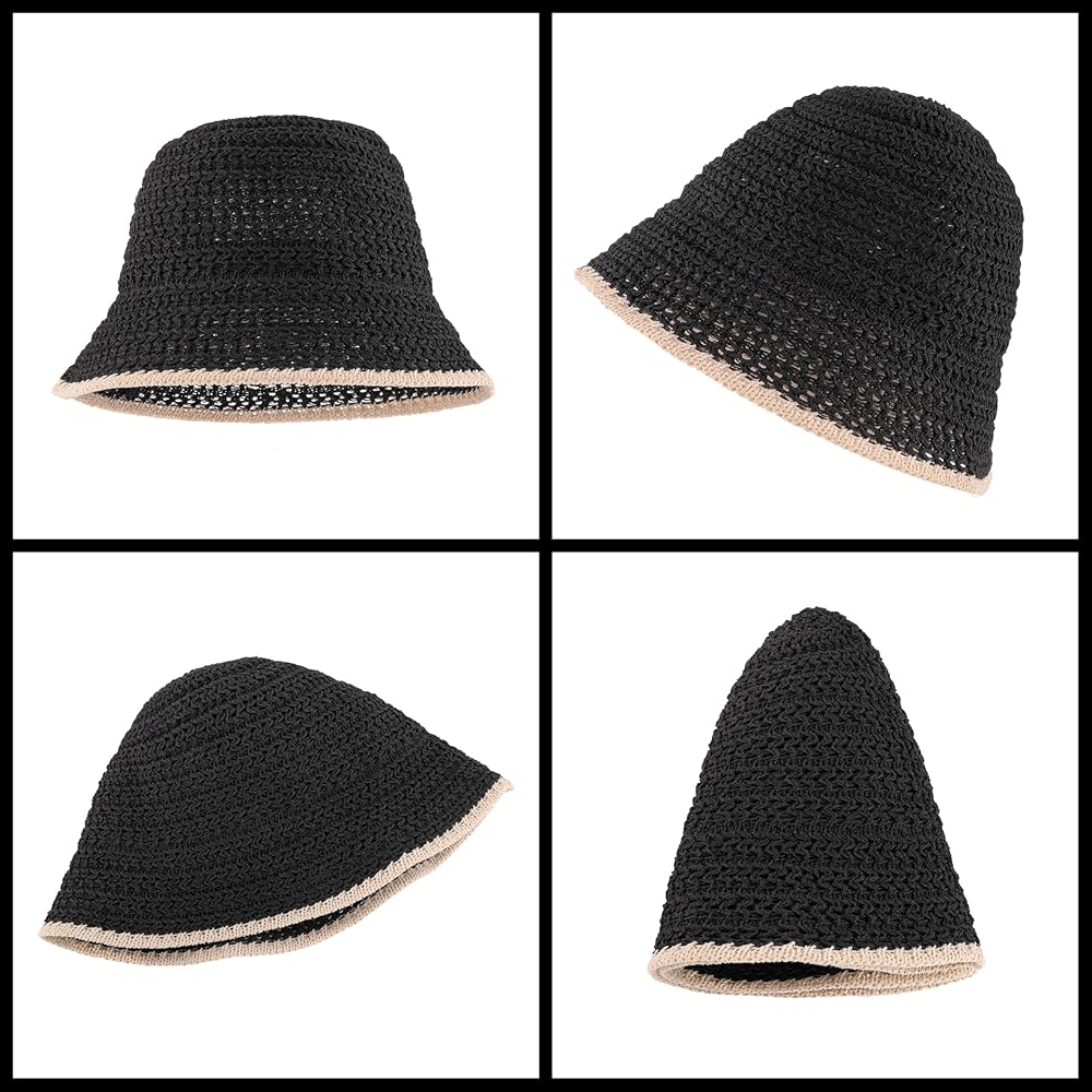 Ayliss Women Sun Hat Floadable Bucket Hat Summer Beach Packable Handmade Woven Floppy Bucket Hat Travel Holiday