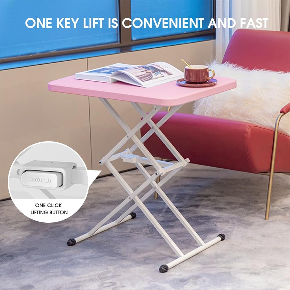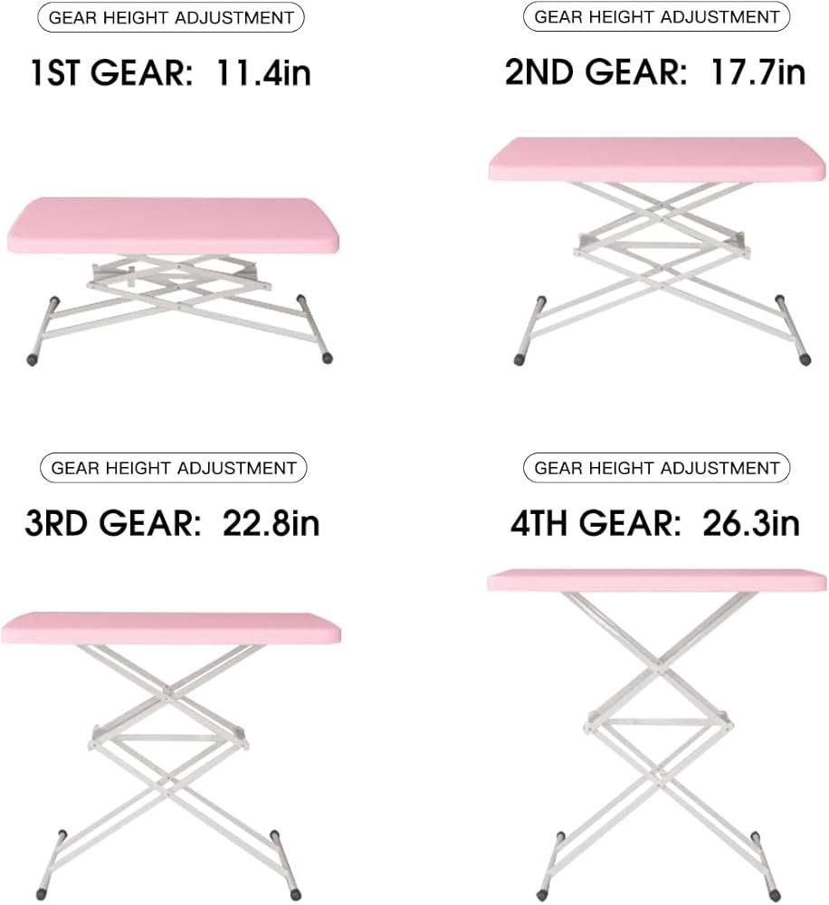 Adjustable to 4 heights: Adjustable height range: 2.9-26.3 inches. As long as the button is held down, the height of the table can be easily raised and lowered, allowing for immediate switching between sitting and standing, thus achieving easy office work.