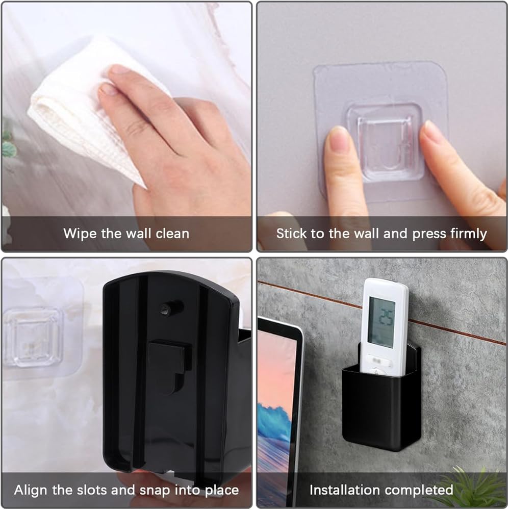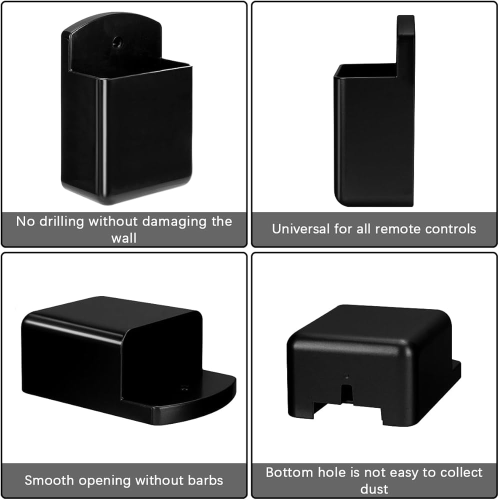 【Premium Materials】Multi-function remote control holder is made of high quality ABS plastic, more durable than PU leather, resin, acrylic. Round opening, no burrs, no barbs, comfortable to hold. The bottom opening is not easy to accumulate dust. Equipped with strong adhesive backing, sticky, no need to worry about the remote control falling off.