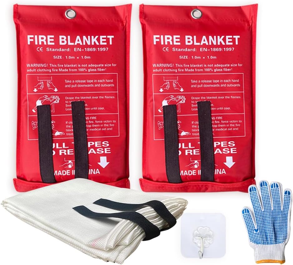 FIRESAFETY RESCUE: Each Fire blanket kit comes with hook and glove. Hang the fire safety blanket on the wall or near your kitchen counters, fireplace, stove, oven, grill.
