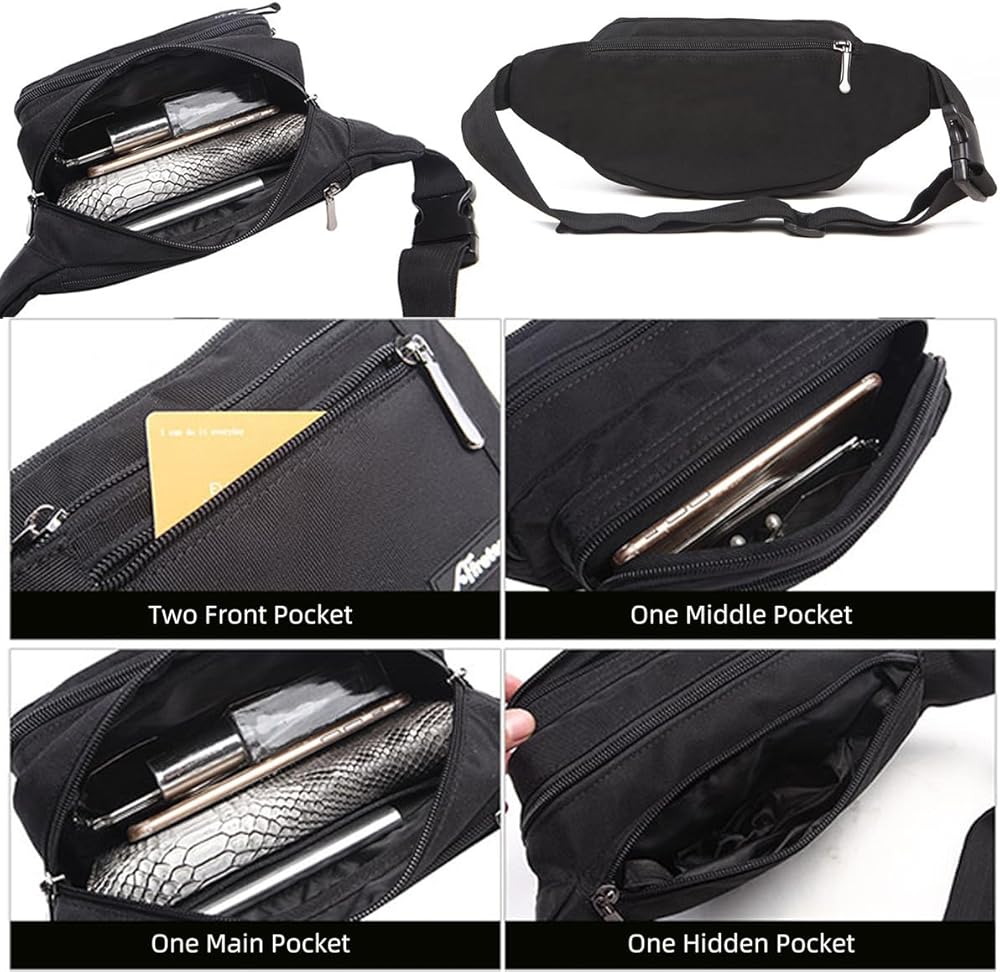 Large Capacity: Our fanny packs for women & men with 5 zipper pockets of different sizes and a hidden zipper pocket. The belt bag has roomy space for all your necessities; the hidden zipper pocket will keep all of your essentials organized and secure