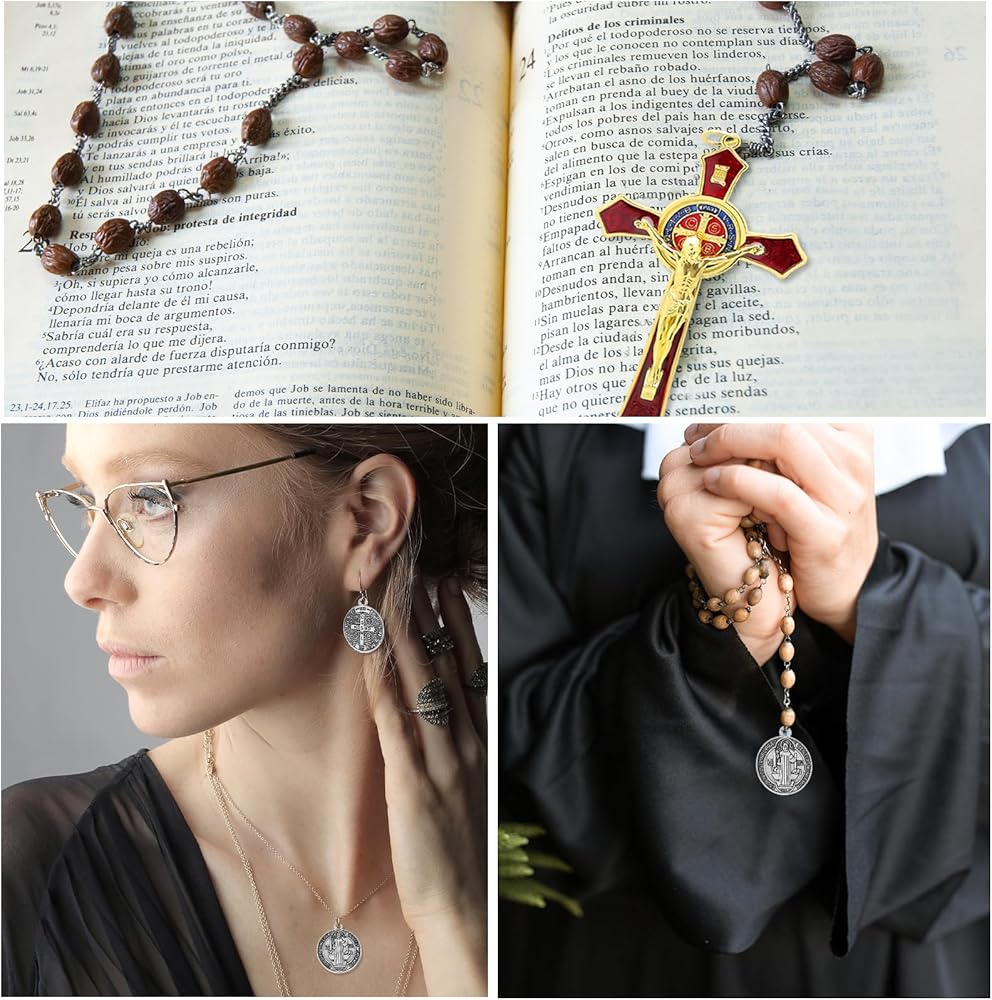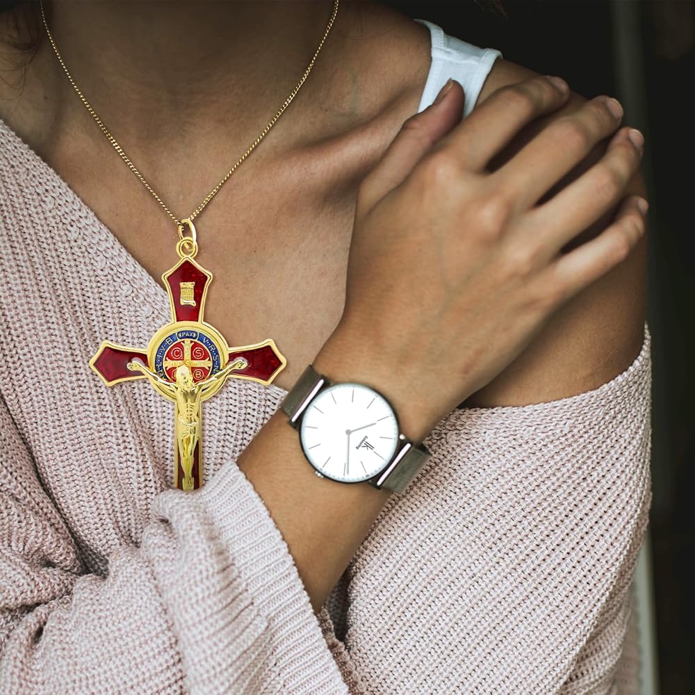 Material: The cross for wall is made of quality enamel and alloy, beautiful and elegant; St benedict medals are zinc alloy, lightweight and small; Jesus Crucifix and San Benito offer protection from negative force, sprinkle blessed vibe to redeem believer