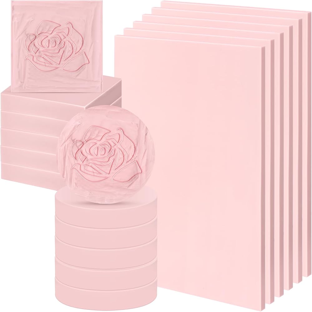This product offers 18pcs pink rubber carving stamp blocks, ideal for both beginners and professionals. Simply carve out your desired shape, then apply water-soluble and oil-based woodblock printing inks.
