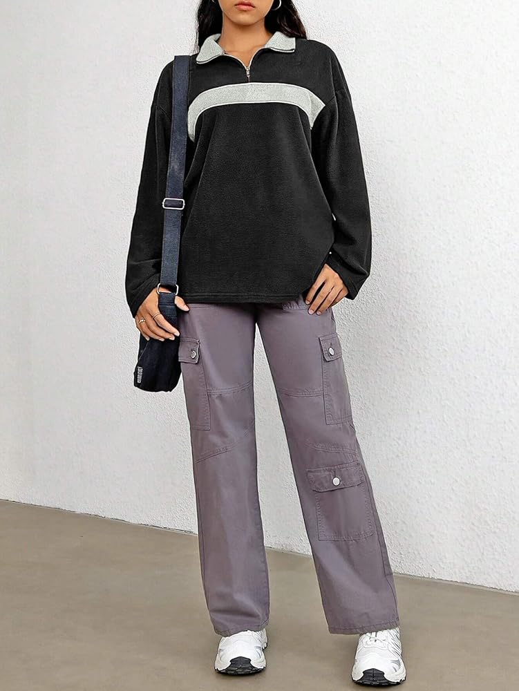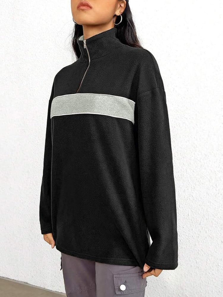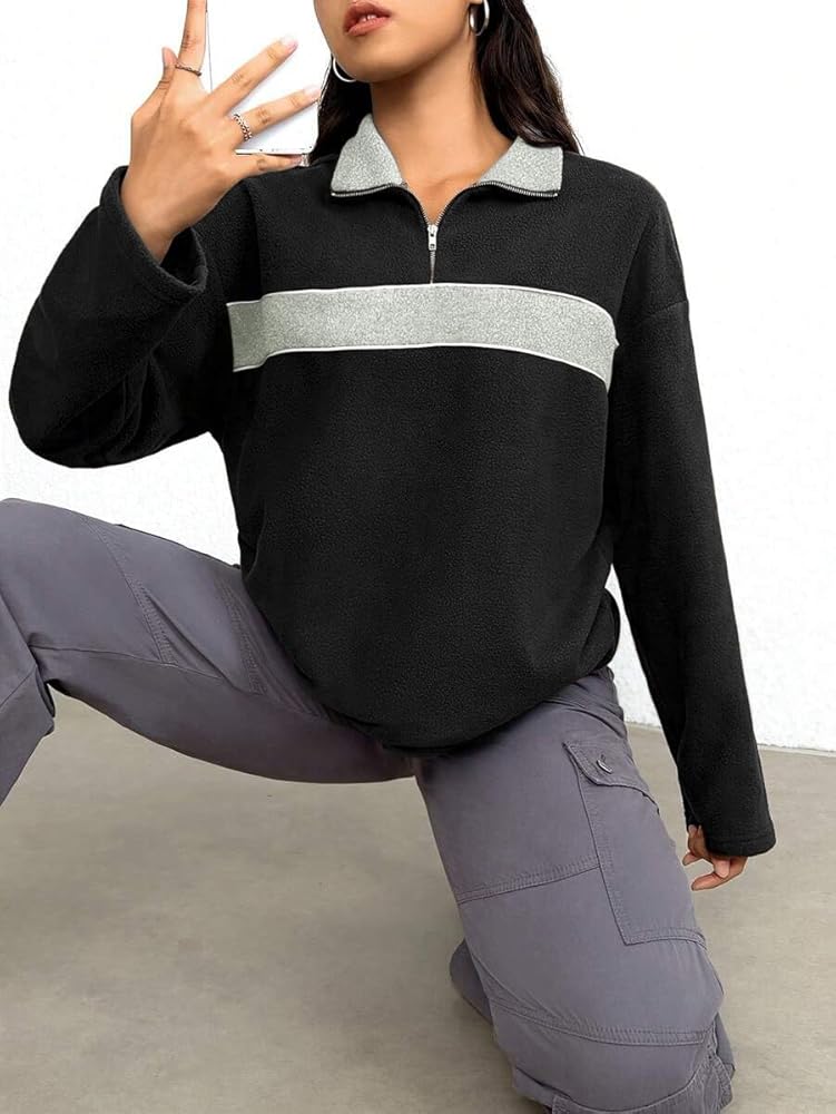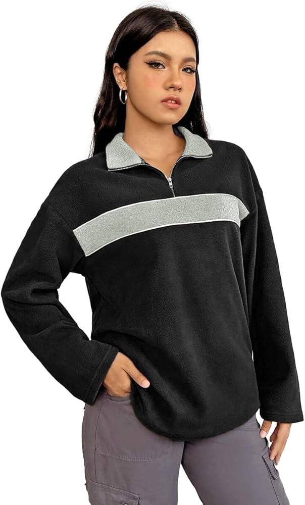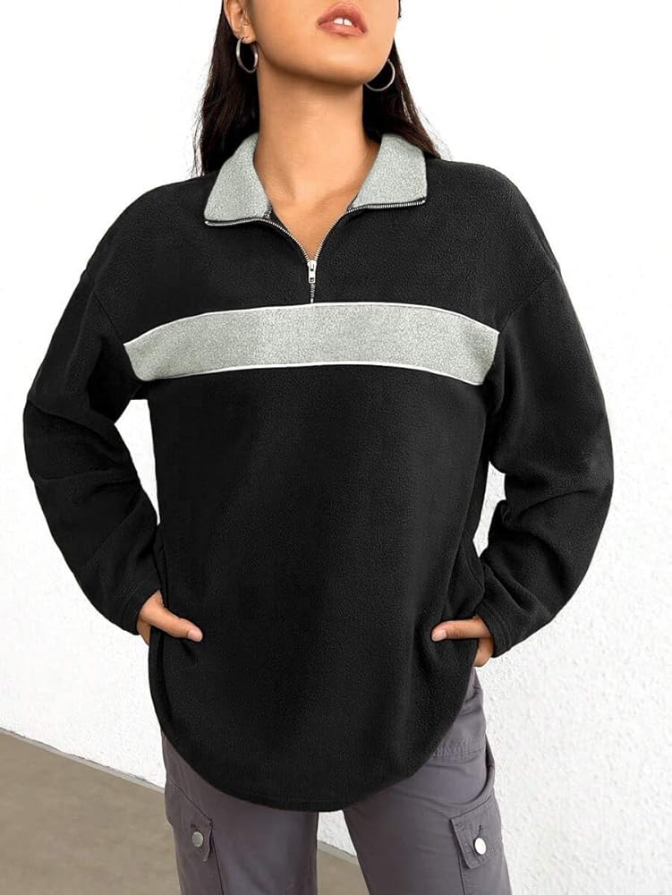 FEATURE: Quarter zip pullover for women offers versatile styling options. Zip it up for a stand up collar that blocks out the wind and keeps you warm, or unzip it for a relaxed lapel look that's casual and breathable. Bold color block patterns add a stylish, modern touch to this classic fleece jacket.