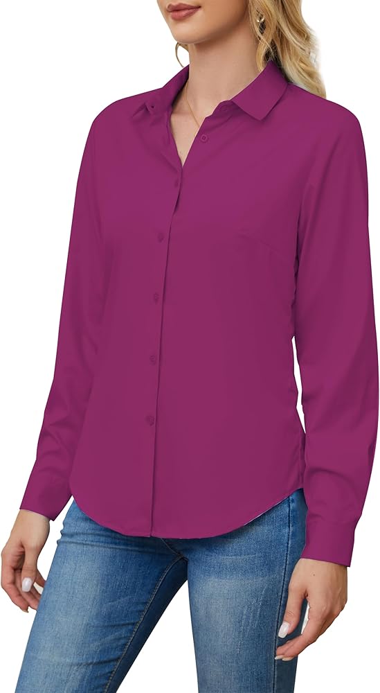 【Soft and Comfy】 long sleeve shirts are made of 48.5% Viscose form Bamboo,48.5% Polyester,3% Spandex with friendly soft touch and flowy glossy drape, wrinkle free, stretch, anti-see-through, skin-friendly, Soft. Special it keeps neat without ironing after washing.Machine Wash.