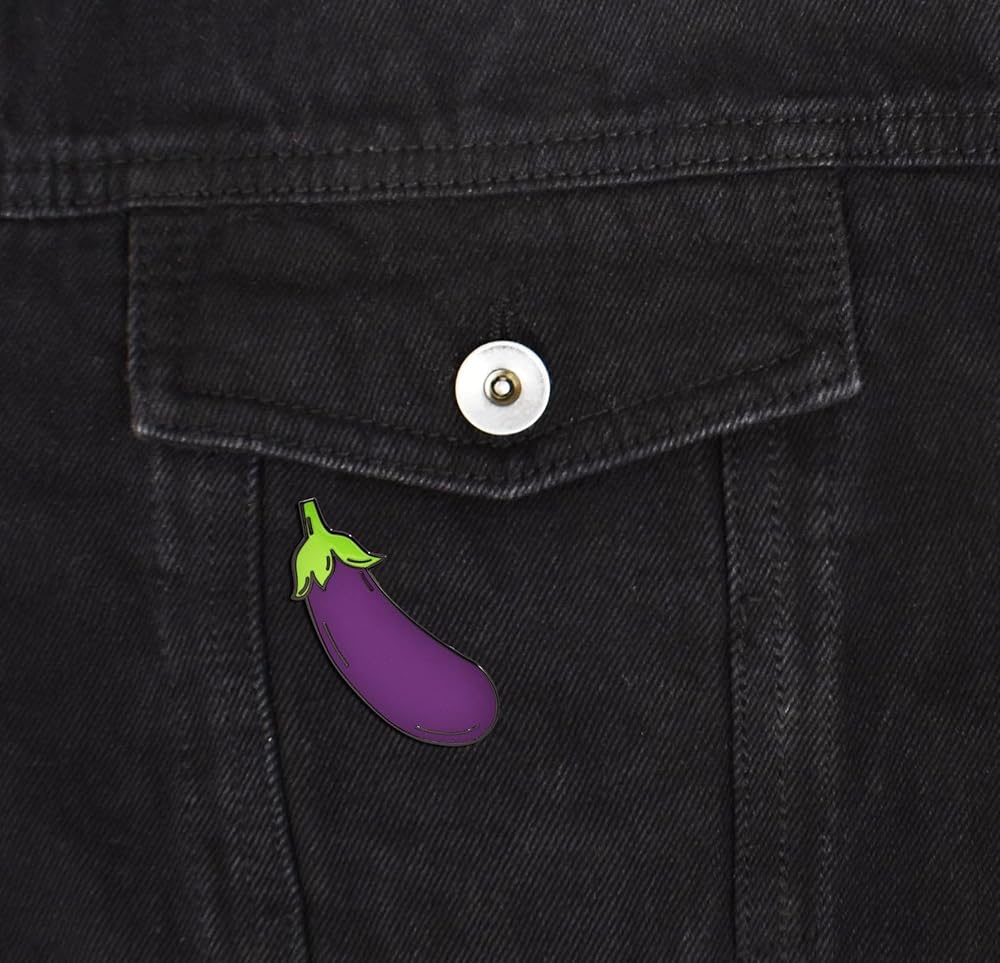 - Eggplant Pin with Black Metal and Hard Enamel